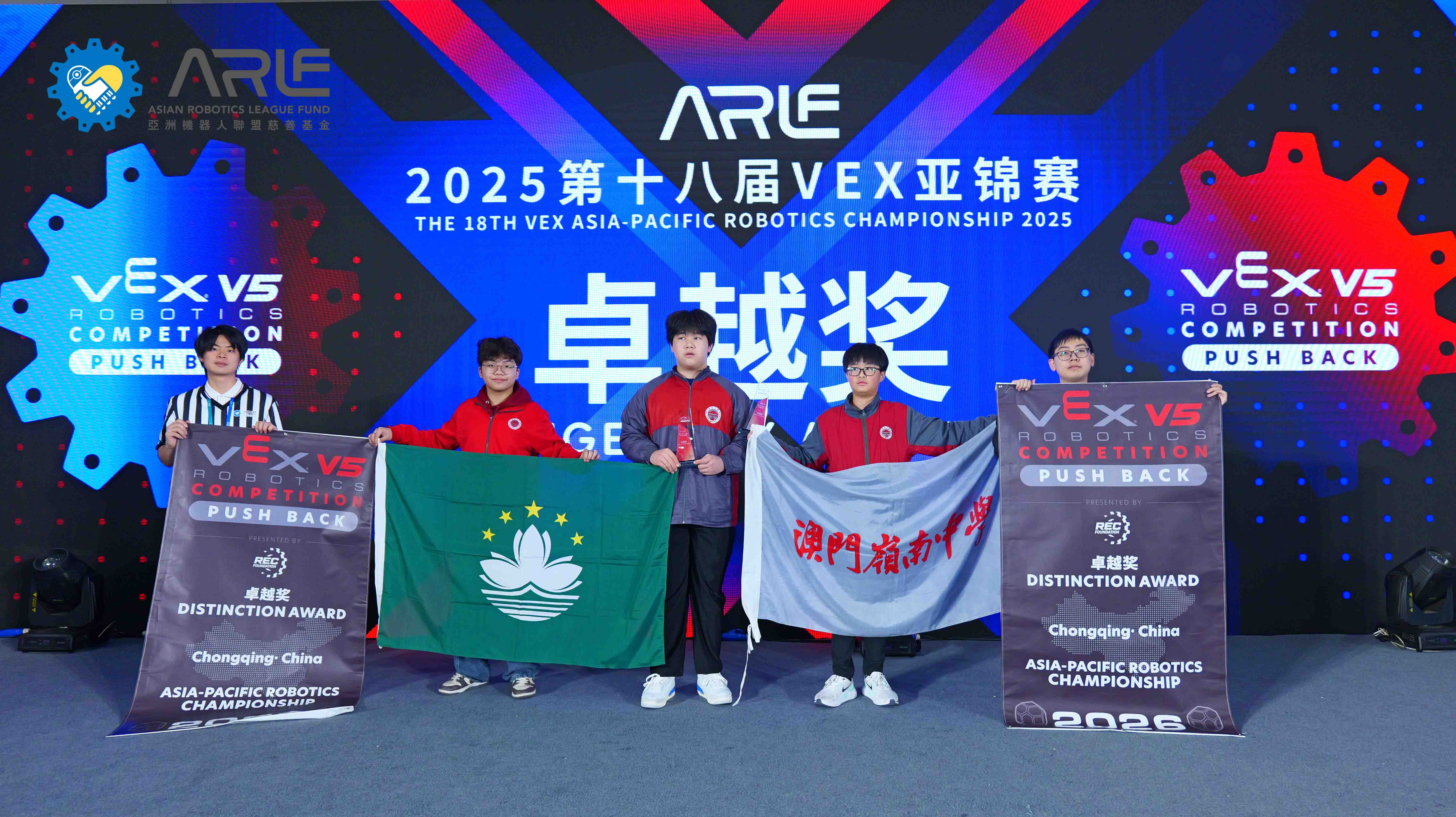 【即時新聞】備受矚目的2025第18屆VEX亞錦賽日前在重慶市兩江新區重慶國際博覽中心舉行。澳門嶺南中學主任羅志偉,老師余虹杰帶領20名學生遠赴當地參賽,並獲得V5RC高中組一等獎一個、二等獎一個、三等獎兩個,建造獎以及出色女孩獎,V5RC初中組三等獎一個以及卓越獎。