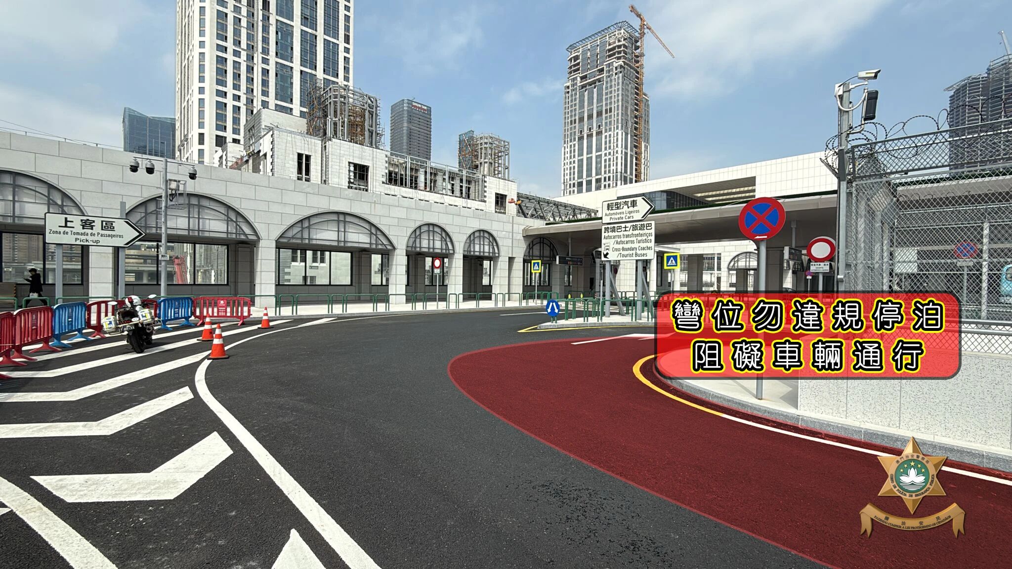 【即時新聞】為提升橫琴口岸澳門口岸區平台的通行及候車秩序,分流不同類型車輛上落客,平台已劃分專用區域,供輕型汽車、的士、巴士及重型客車不同的車種分區上落客,駕駛者須使用相應的上落客區,違反者會被檢控。