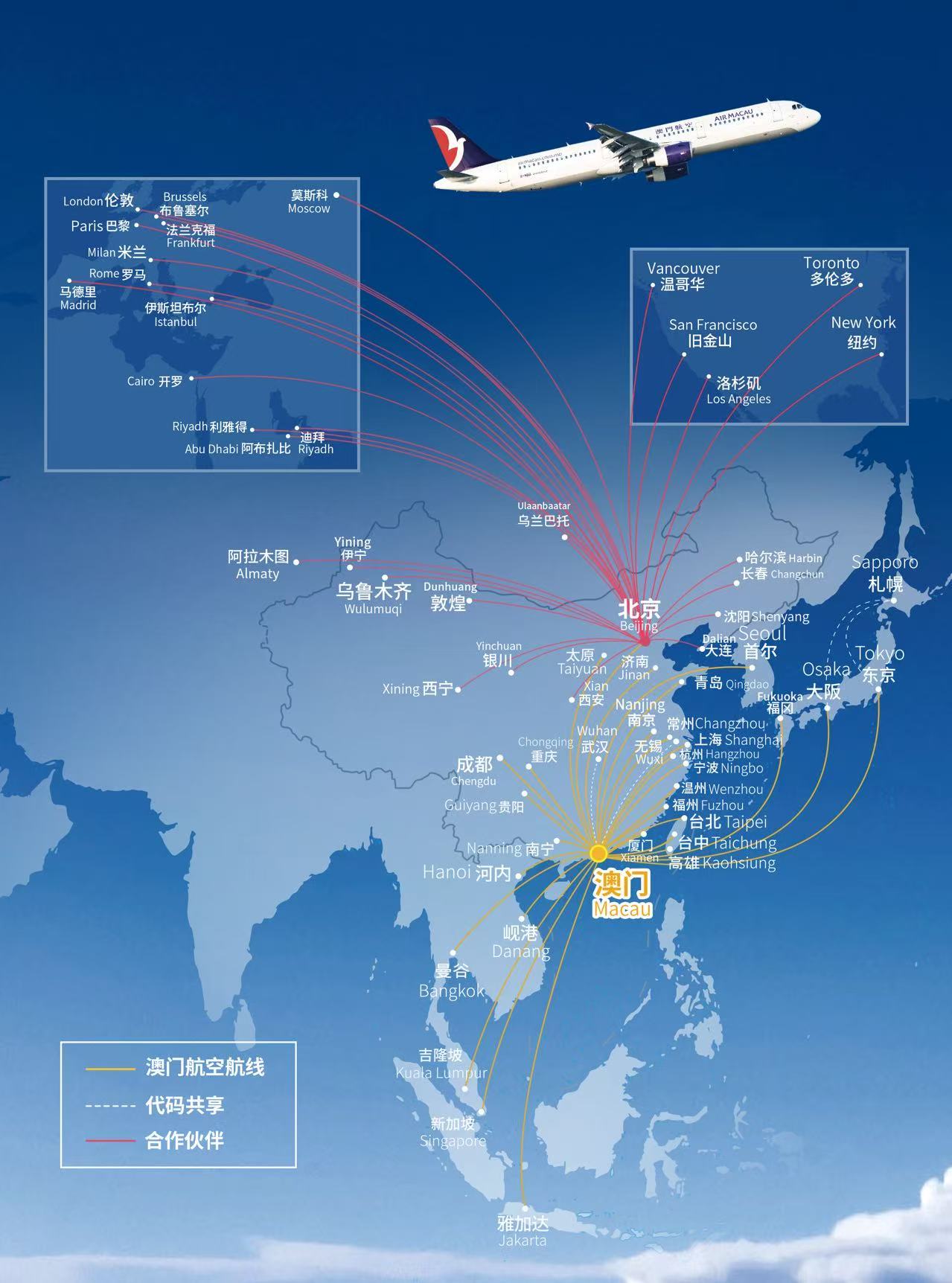 本航季,澳門航空深化與國航系航司的合作,依託國航及成員航司的全球航線網絡,重點打造高效聯程出行體系,切實解決旅客長途出行需求,實現「澳門出發、全球通達」的出行目標。