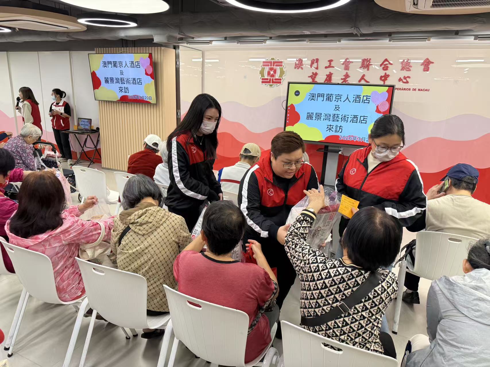 【即時新聞】澳門葡京人及麗景灣藝術酒店秉持「攜手行善 用心關愛」的理念,組織「關愛大使」團隊成員前往工聯總會屬下望廈老人中心進行慰問探訪,與近百位長者共度溫馨時光,傳遞真摯關懷,展現企業積極履行社會責任的承諾。