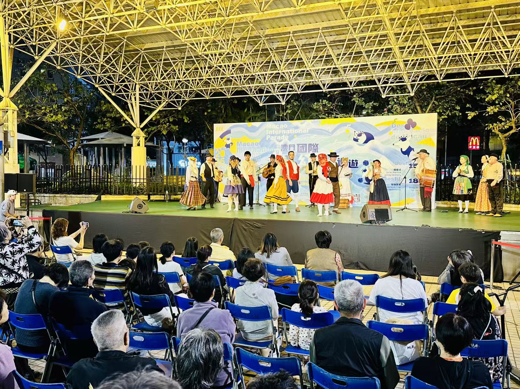 【即時新聞】作為2026澳門國際幻彩大巡遊「文化多點,幸福多點」社區延伸演出的重要環節,今晚文藝盛宴登陸祐漢街市公園,兩大本土藝術團體傾情獻演,吸引眾多市民前來觀賞,現場氛圍溫馨熱烈,盡顯社區文藝的獨特風采。