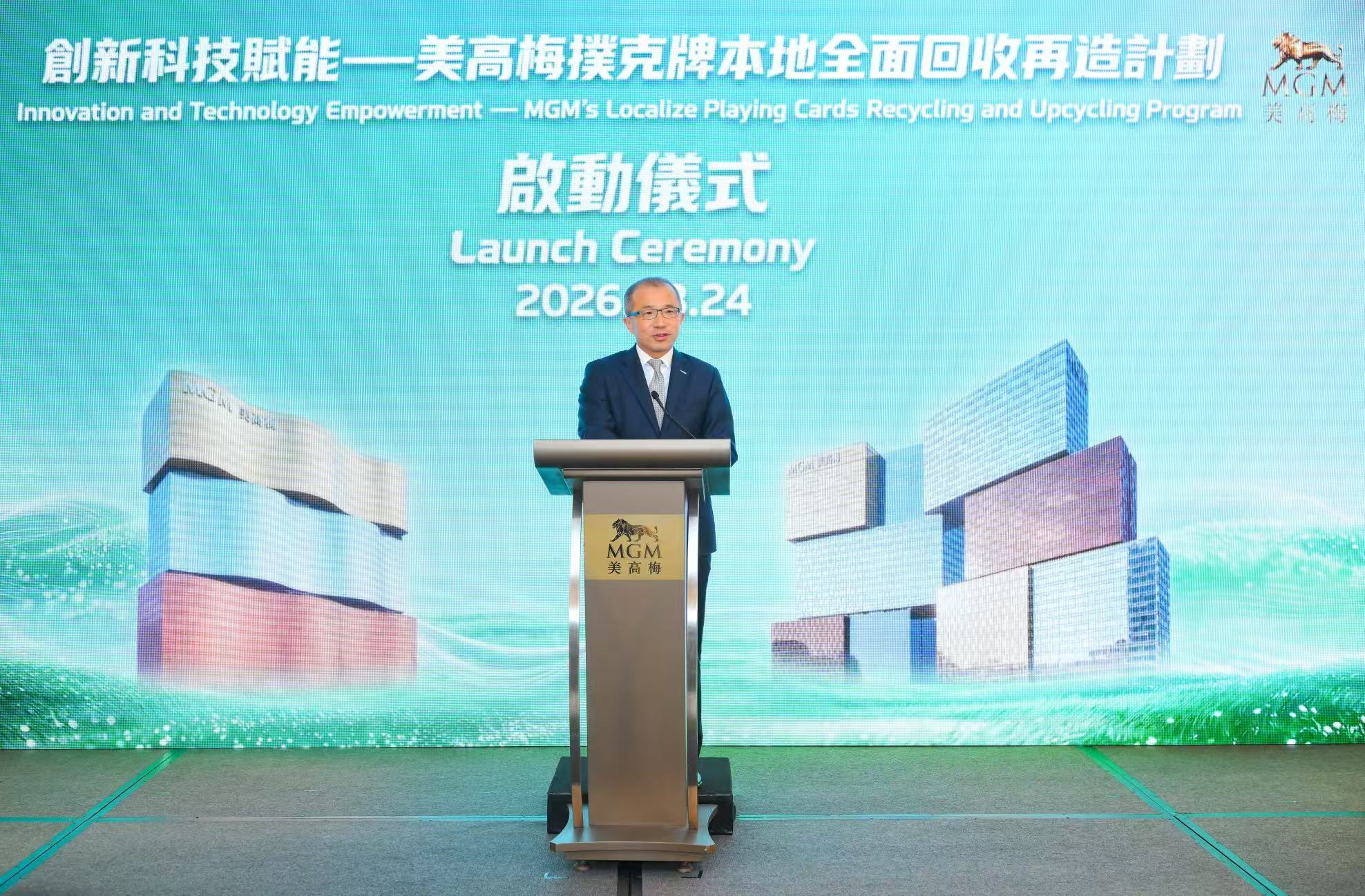 【即時新聞】美高梅於今日正式啟動「創新科技賦能—美高梅撲克牌本地全面回收再造計劃」,成為本澳首間實現撲克牌本地全流程回收再造的綜合旅遊休閒企業,進一步彰顯其推動綠色科技應用、廢棄物資源再利用,以及支持澳門經濟適度多元發展的堅定承諾。