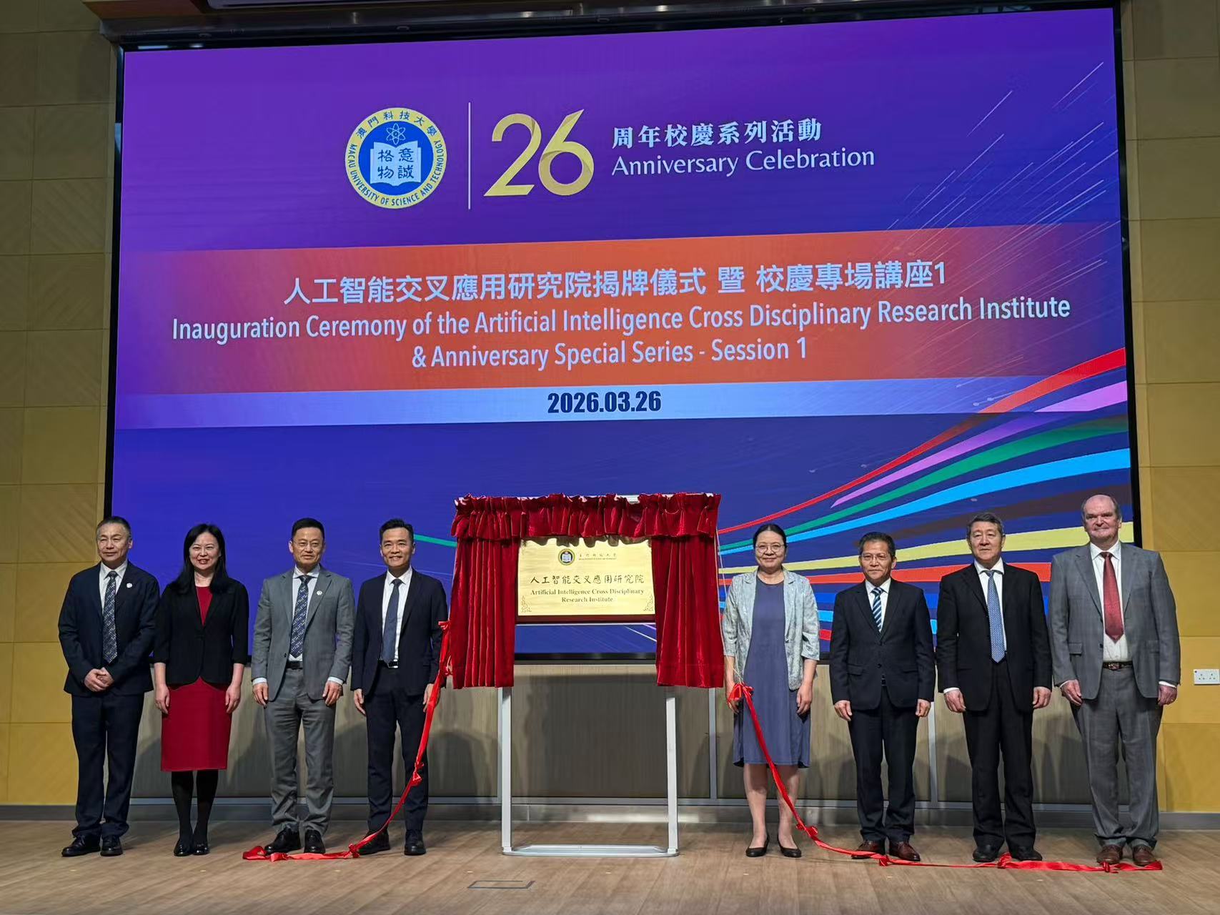 【即時新聞】由澳門科技大學主辦的「26周年校慶系列活動:人工智能交叉應用研究院揭牌儀式暨校慶專場講座」上午在科大N101大禮堂舉行,揭牌儀式見證人工智能交叉應用研究院(ArtificialIntelligenceCrossDisciplinaryResearchInstitute,AI-X)的設立,旨在整合科大於人工智能、生物醫學、臨床轉化與大數據分析等方面的優勢資源,搭建跨學科協同創新平台,推動基礎研究、技術研發、成果轉化與國際合作協同發展。據悉,研究院目前已初步完成核心學術團隊組建,並同步推進研究生招生及系列學術活動規劃,標誌著科大在人工智能交叉應用領域邁向新的發展階段。