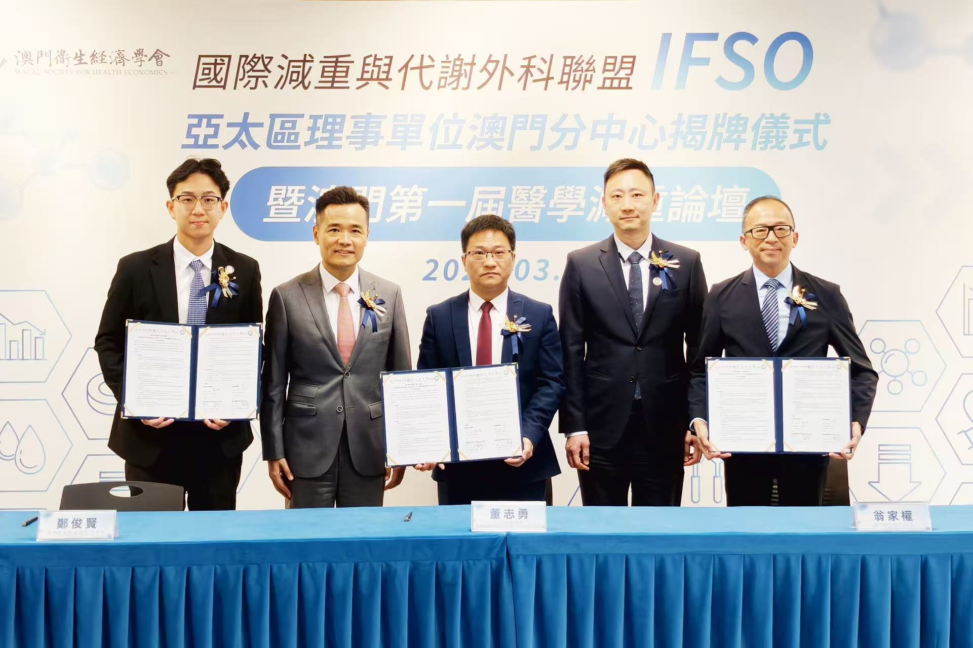 【即時新聞】為積極響應國家“中國體重管理年”戰略部署,貫徹落實《健康澳門藍圖》,進一步完善澳門慢性病防控體系,推動減重與代謝醫學及外科專業發展,澳門銀葵醫院聯合澳門衛生經濟學會、國際減重與代謝外科聯盟(IFSO)及廣東省醫學會肥胖代謝外科分會舉辦“國際肥胖與代謝病外科聯盟IFSO亞太區理事單位澳門分中心揭牌儀式暨澳門第一屆醫學減重論壇”,吸引來自內地、香港及澳門本地的醫療專業人士、學術界代表等逾50人參加。