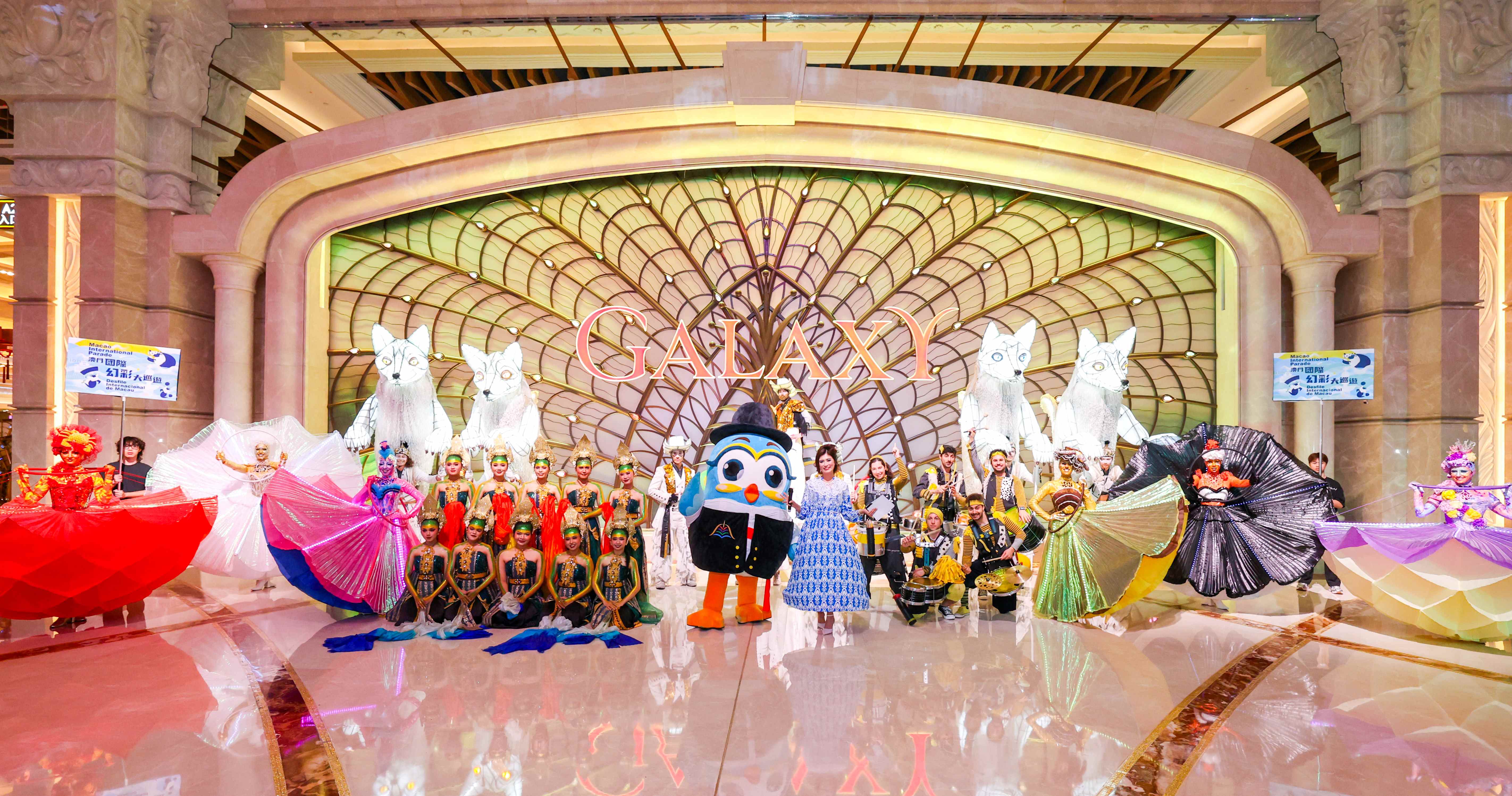 此外,3月26日至28日期間,多間綜合旅遊休閒企業聯動多個外地藝團走進綜合度假村,呈獻五場精彩的預熱表演,包括澳娛綜合度假股份有限公司的“異域舞風華”、澳門永利渡假村的“永利奇幻湖景夜”、美高梅的“海洋奇藝匯”、金沙中國有限公司的“金沙中國時空漫遊”及銀河娛樂集團的“銀娛閃耀樂巡遊”。來自不同國度的表演者為觀眾呈獻狂歡舞蹈、高蹺、雜技、馬戲及大型移動裝置等多元形式的表演,既彰顯澳門作為中西文化交融之地的獨特魅力,亦為大巡遊活動營造濃厚節慶氛圍。