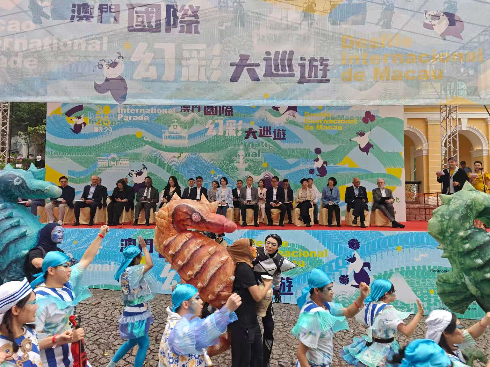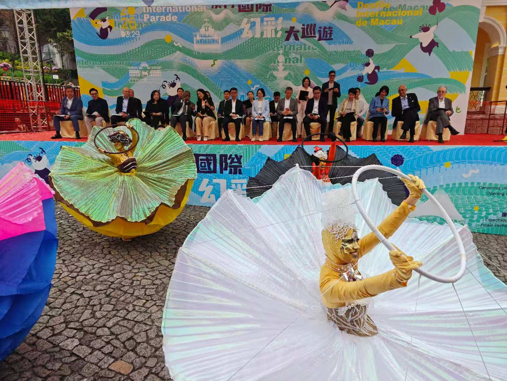 【即時新聞】由文化局、澳門永利渡假村、澳娛綜合度假股份有限公司、金沙中國有限公司、美高梅及銀河娛樂集團聯合主辦的「2026澳門國際幻彩大巡遊」下午3時啟幕,一眾巡遊隊伍隨後並於大三巴牌坊出發,吸引眾多市民及旅客駐足欣賞,現場氣氛熱鬧歡騰。