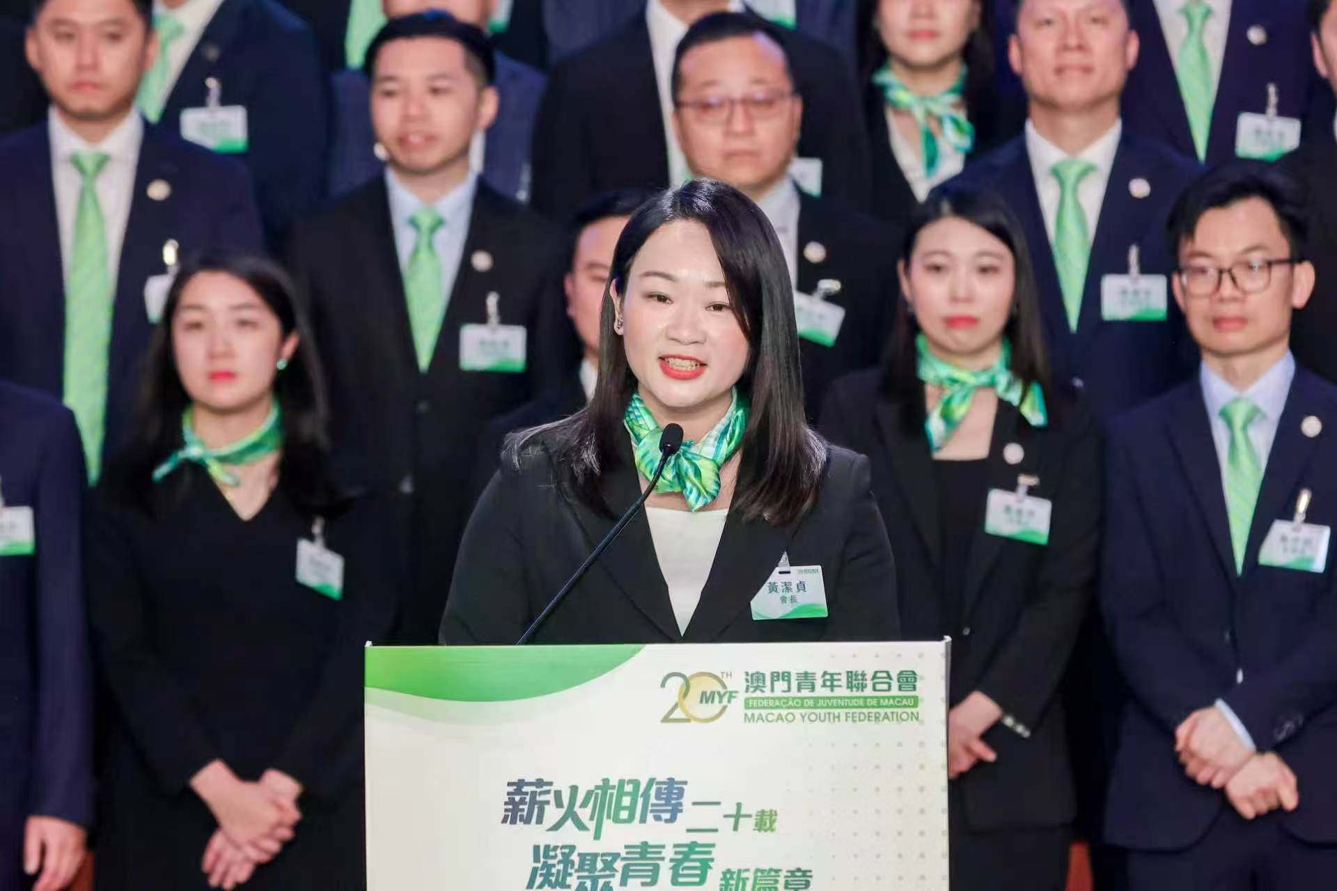青聯會長黃潔貞表示,新一屆架構將以習近平總書記視察澳門重要講話精神為指引,深入學習貫徹二十屆四中全會及全國兩會精神,恪守“服務國家、服務澳門、服務青年”宗旨,重點做好四方面工作:一是強化思想引領,創新開展國情教育,築牢愛國愛澳根基;二是促進青年發展,聚焦“四業”需求,推動青年政策落地見效;三是融入國家大局,依託廣東辦事處,助力青年把握國家發展和大灣區建設機遇;四是拓展對外交流,善用澳門“背靠祖國、聯通世界”獨特優勢,講好中國故事、澳門故事。