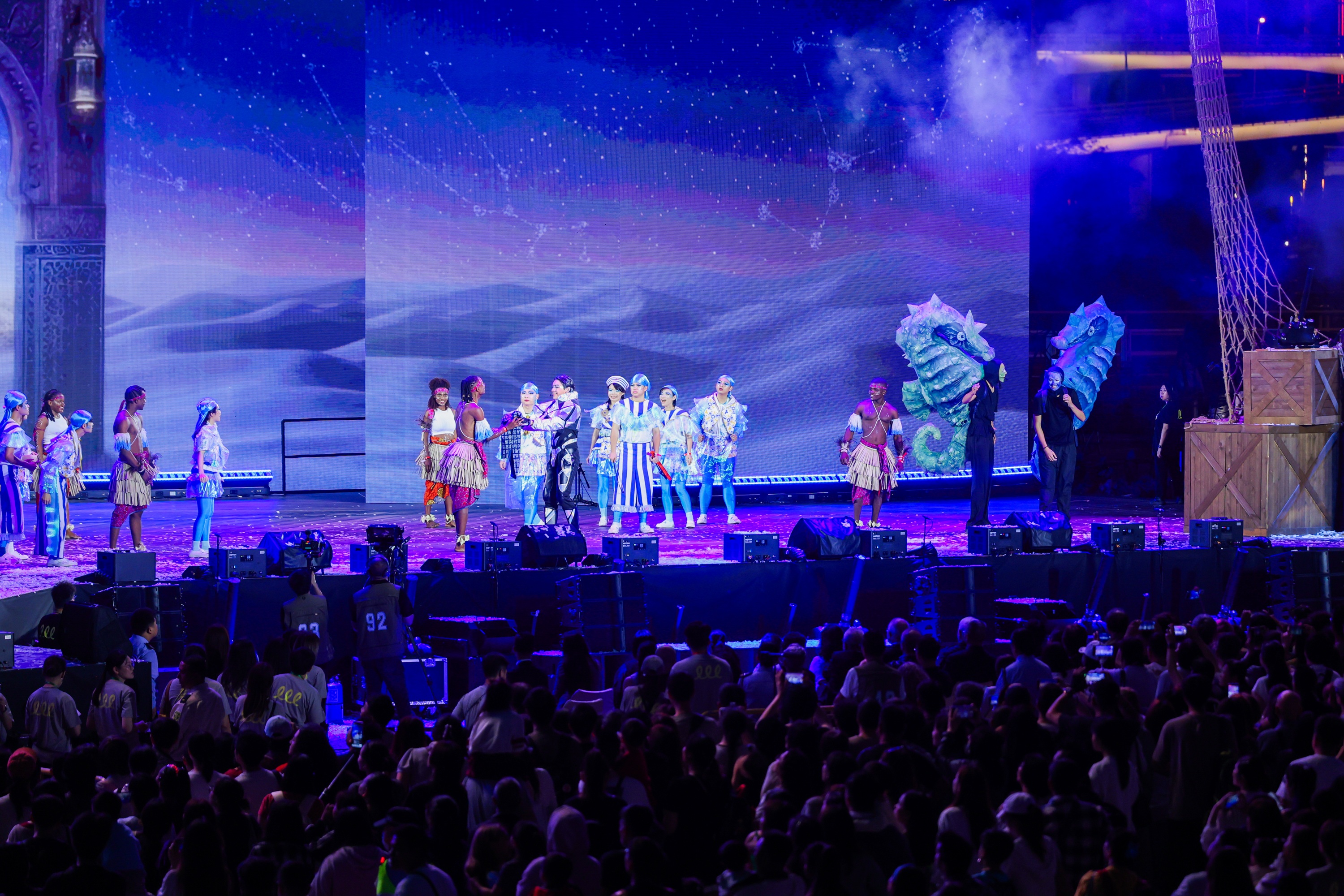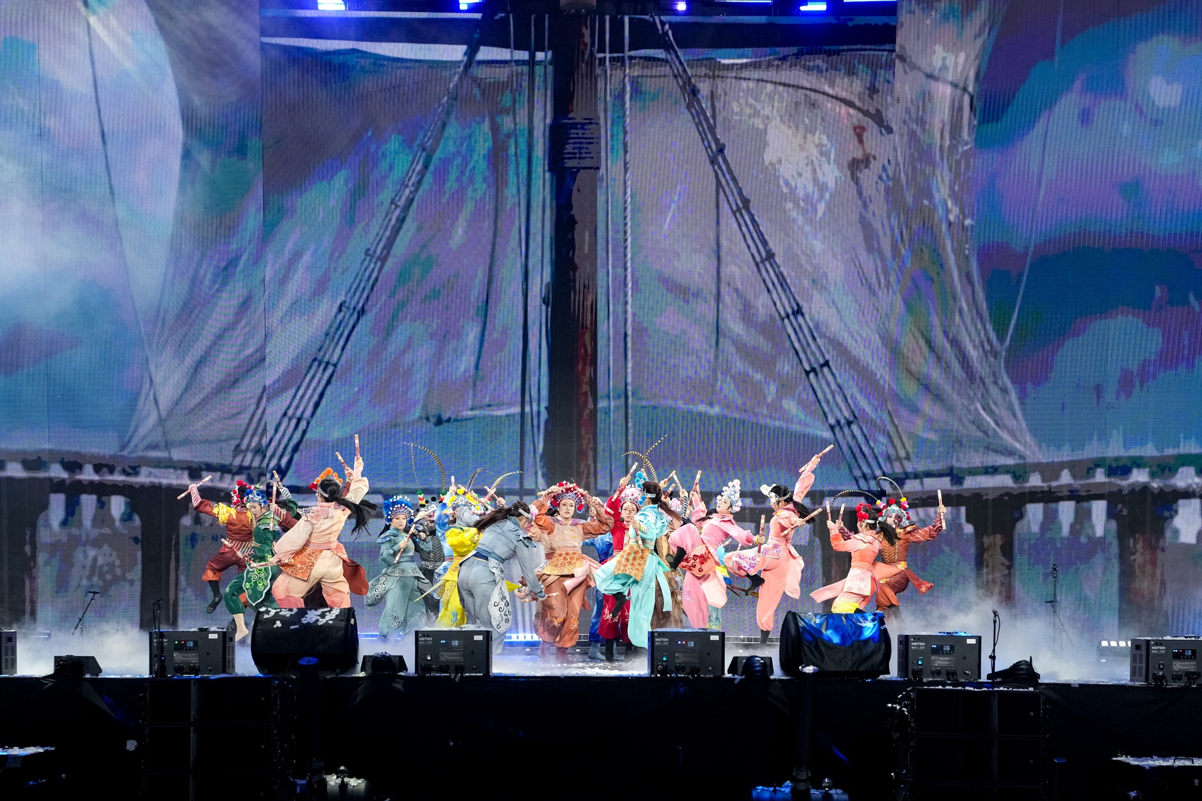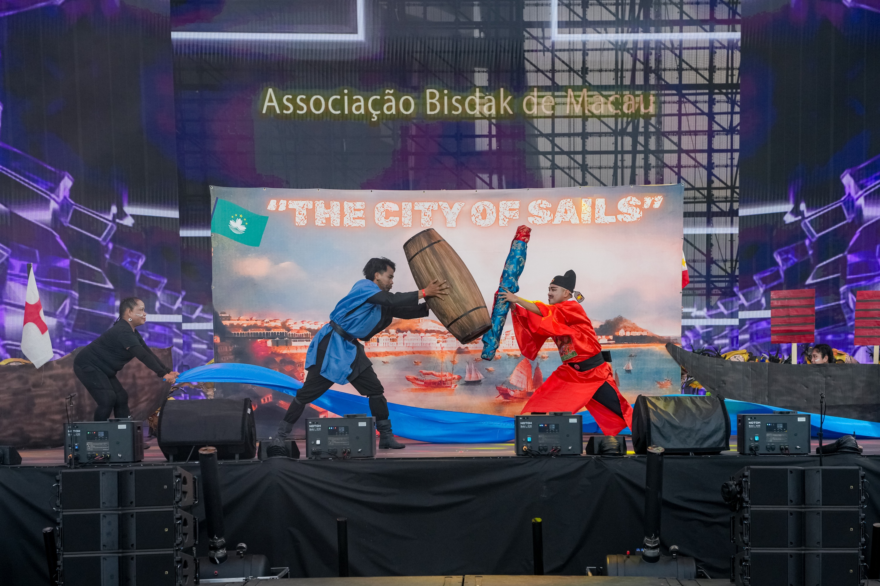 壓軸演出由澳門藝團與外地團隊攜手呈獻,匯聚舞蹈、雜技、高蹺、高輪車、大型氣球裝置、敲擊樂等多元藝術形式輪番登場。外來藝團呈獻絢麗奪目的視覺表演、本地精英藝團則以舞蹈、啦啦隊、街舞及傳統民族表演熱情呼應,共同傳遞“愛‧和平‧文化共融”的大巡遊理念。是次匯演透過多元文化藝術演出,全方位呈現澳門作為海上絲綢之路重要交匯點的獨特城市魅力,體現澳門“以中華文化為主流、多元文化共存的交流合作基地”的角色定位,助力建設文化底蘊深厚與充滿活力的“文化澳門”。