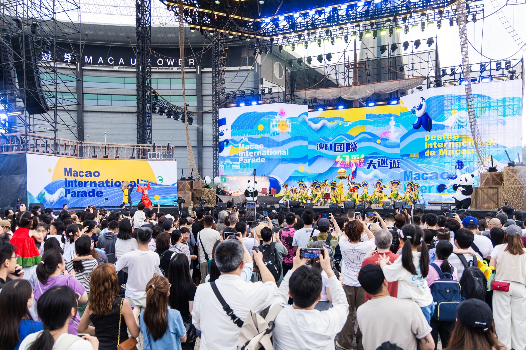 【即時新聞】由文化局、澳門永利渡假村、澳娛綜合度假股份有限公司、金沙中國有限公司、美高梅及銀河娛樂集團聯合主辦的“2026澳門國際幻彩大巡遊”於今日(3月29日)圓滿舉行。傍晚時分,巡遊隊伍齊聚西灣湖廣場呈獻精彩的壓軸匯演,本地與外地藝團聯手傾力獻藝,共同打造熱情澎湃、多元交融的文化盛會,充分展現澳門作為中西文化薈萃之地的獨特魅力。