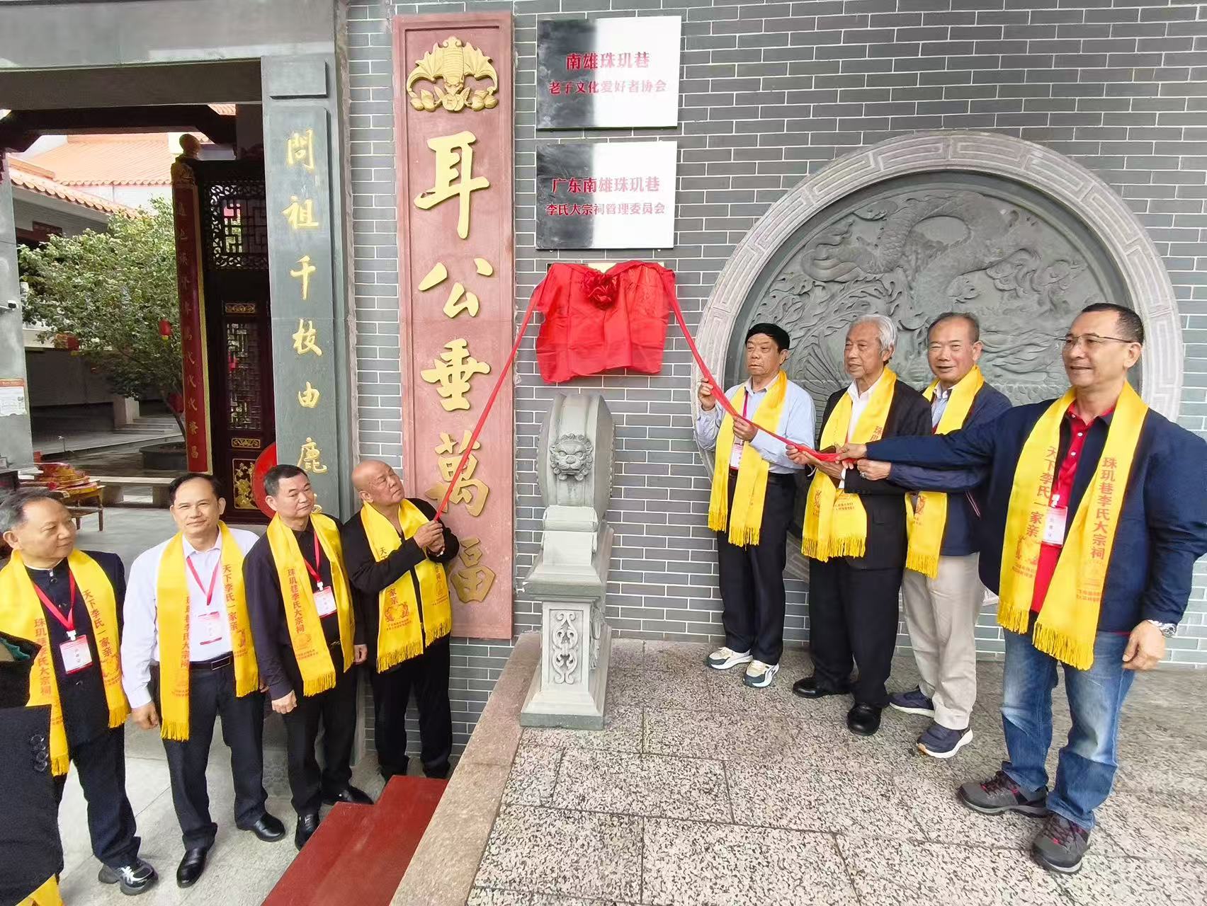 最後,與會宗親一同前往南雄珠璣巷李氏大宗祠舉行隴西李氏文化研究會揭幕儀式,李庚騮、李子豐、李瑞勤、李培亨、李培坤、李號蘭、李關享及李洪斌共同為儀式揭牌,在宗祠根脈之地見證這一重要時刻。