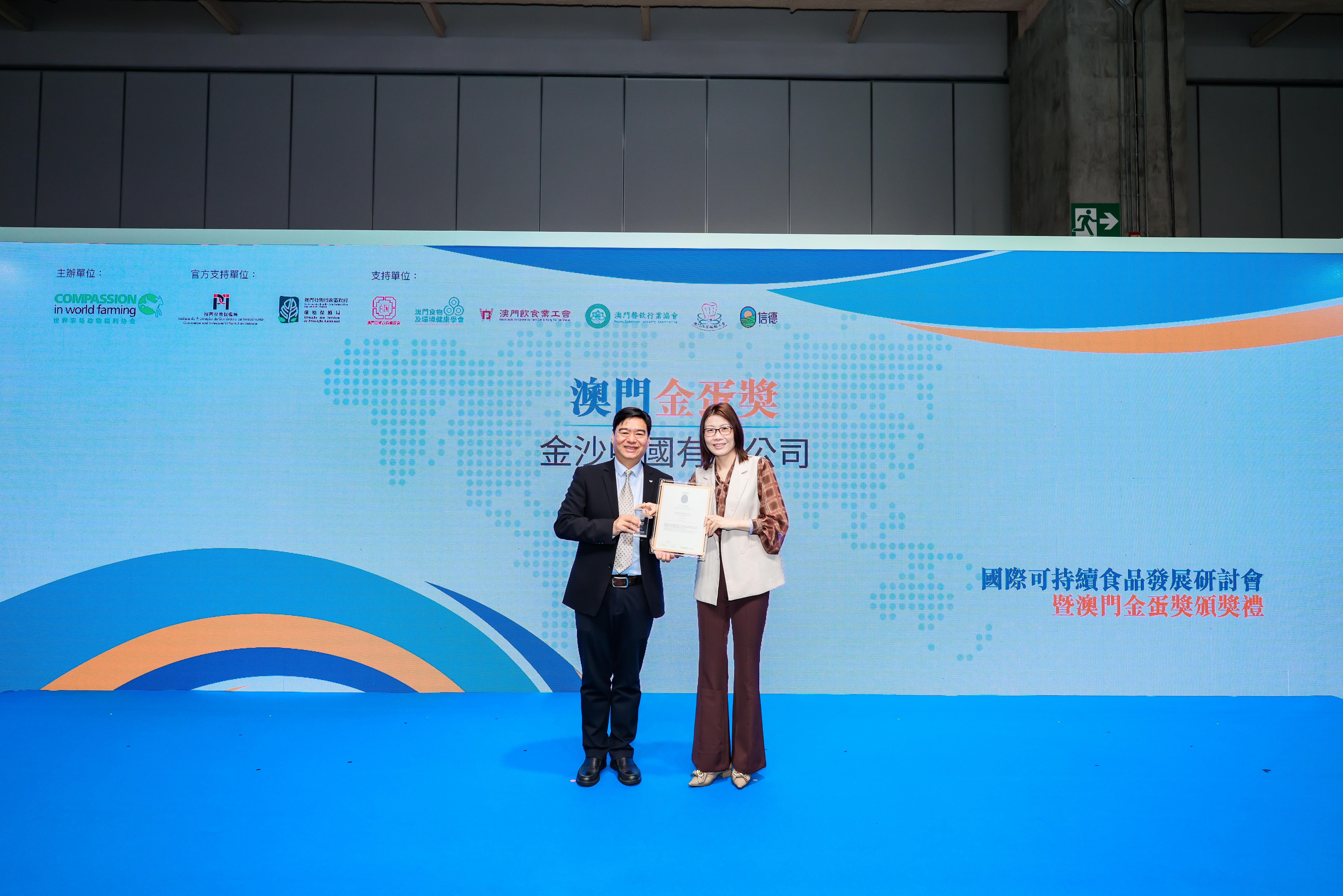 隨後舉行澳門金蛋獎頒獎典禮,旨在表彰澳門可持續食品領域作突出貢獻的企業,共有四家企業憑藉專業實力與創新實踐榮獲殊榮。