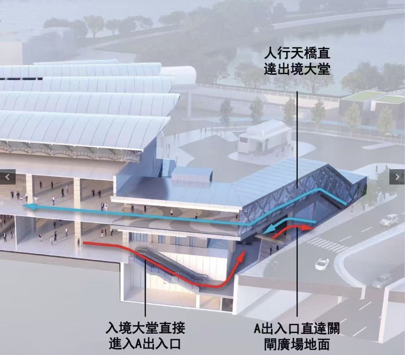 輕軌東線ES1站關閘邊檢大樓連接通道料2029年6月竣工