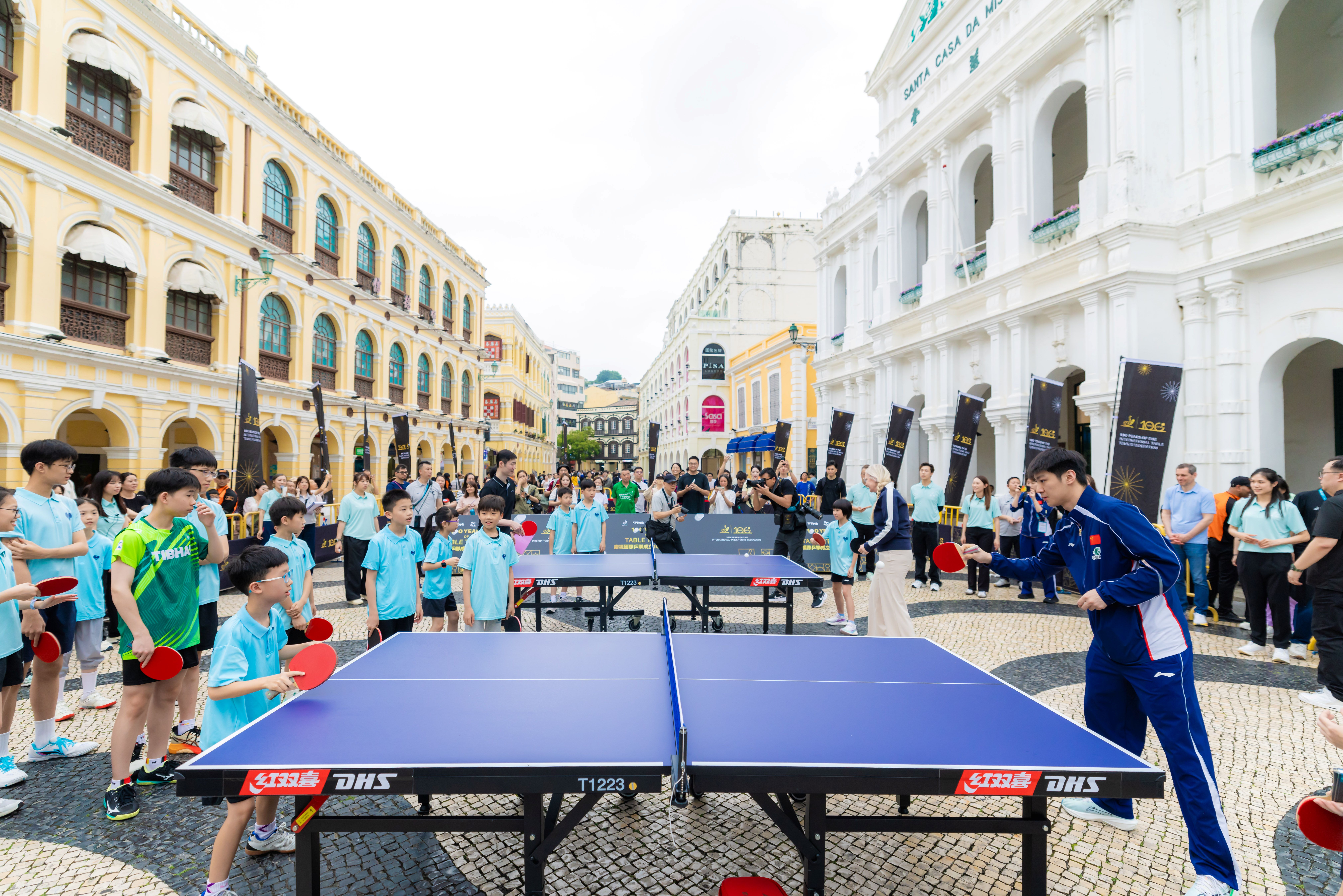 慶祝儀式於今(4)日上午議事亭前地舉行,邀請國際乒聯及中國乒乓球協會代表,以及中國乒乓球隊球員蒯曼、薛飛和中國澳門球手梁安娜,與澳門青少年乒乓球學校學員進行互動交流。出席儀式的嘉賓包括:國際奧委會委員、國際乒聯主席佩特拉索林(Petra Sörling);國際奧委會委員邁克爾姆龍茲(Michael Mronz);澳門體育局代局長李詩靈;中國乒乓球協會主席王勵勤;銀河娛樂集團企業事務董事林志成;國際乒聯副主席沈偉妮(Virginia Sung);世界乒乓球職業大聯盟首席執行官史蒂夫丹頓(Steve Dainton);世界乒乓球管理集團副總裁陳欣;澳門乒乓球總會理事長許江雄。