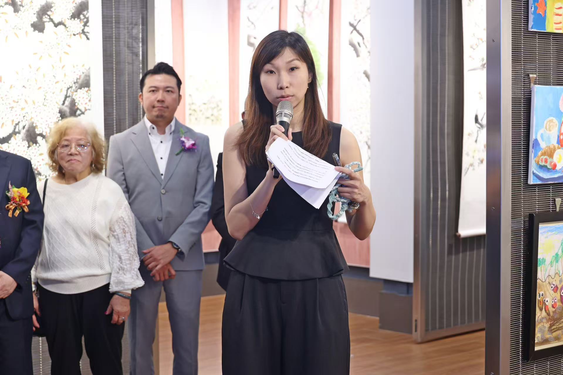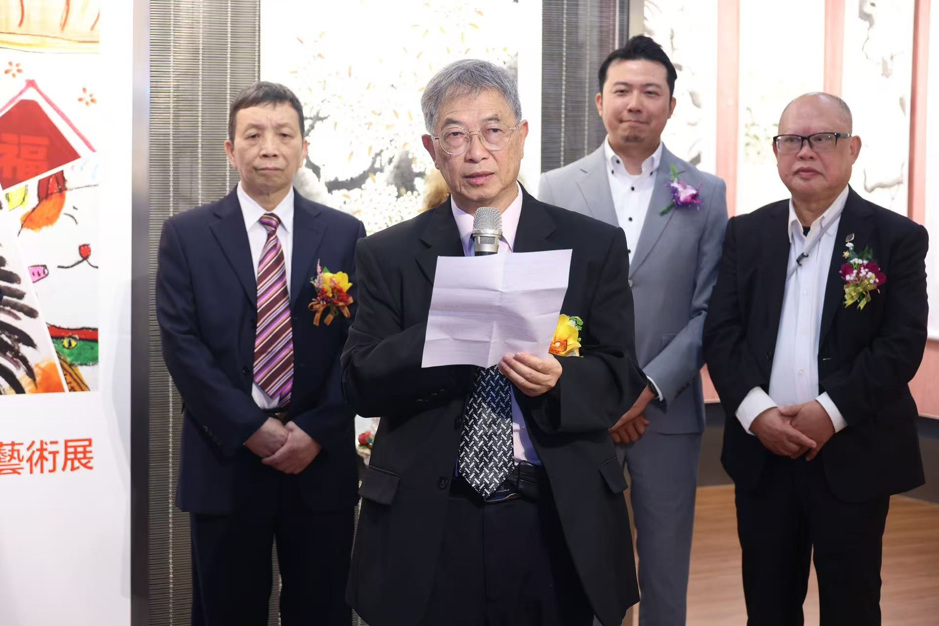 展覽開幕儀式下午5時舉行,中聯辦宣傳文化部副處長徐東傑,教青局教研人員發展處處長黃達財,廣州市越秀區澳門政協委員楊智強,澳門協同特殊教育學校校長林劍如,澳門書畫藝術聯誼會榮譽會長鄭子謙、劉寶石,澳門世邦傢俬建材城董事長侯沐天,澳門廣州增城青年商會會長林阿富,澳門民間藝術珍藏協會會長李明仔等嘉賓主禮。