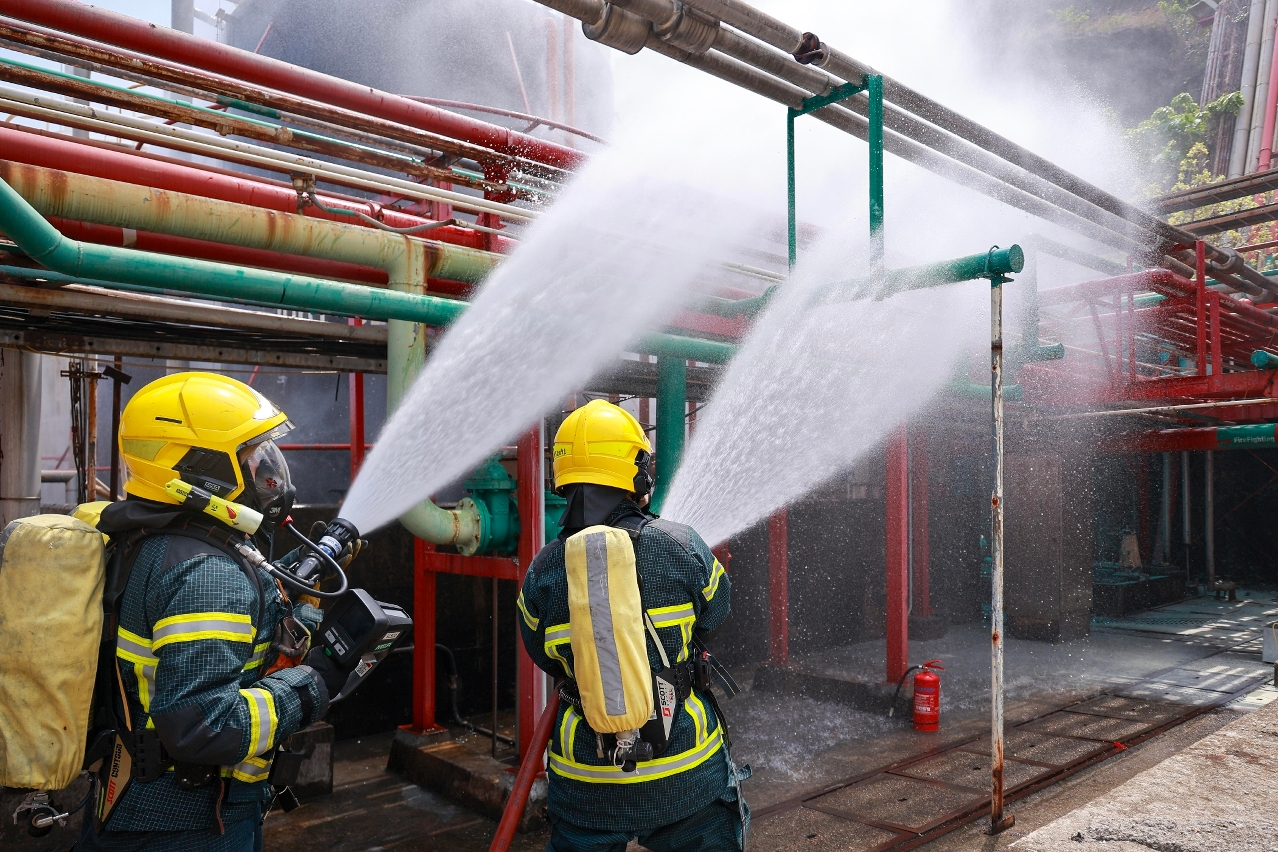 【即時新聞】為加強消防局與澳門電力股份有限公司在發生事故時的應變措施及協調溝通,消防局今日(9日)上午,聯同上述公司在路環九澳發電廠內舉行聯合消防演習。