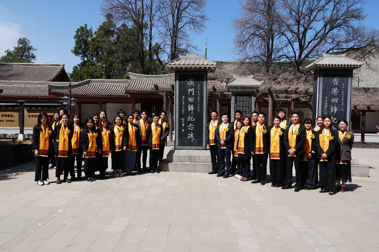 4月5日,研習團出席在陝西延安黃陵縣橋山祭祀廣場舉行的丙午(二〇二六)年清明公祭軒轅黃帝典禮。在肅穆莊嚴的禮樂聲中,由柯嵐司長、全國人民代表大會澳區委員何敬麟等代表向黃帝像敬獻花籃,帶領團員深切體悟華夏兒女血脈相連的民族根源。團員們在黃帝陵內的“澳門回歸紀念碑”前合影留念,深刻感受祖國對澳門特區的關懷與厚愛。