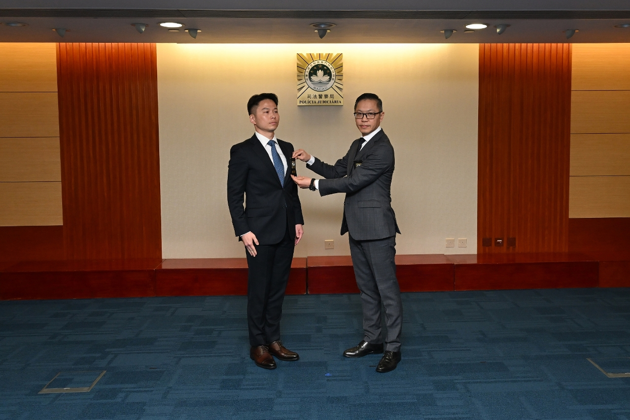 【即時新聞】司法警察局今日(13日)在總部大樓舉行二等督察及副督察就職儀式。在薛仲明局長主禮及監誓下,並在賴文威、蘇兆強、岑錦榮三位副局長和各部門主管的見證下,趙朱惠敏副督察宣誓就任二等督察,梁淑文、李志偉、曾家豪、周錠軒及何偉樂五位刑事偵查主任宣誓就任副督察。