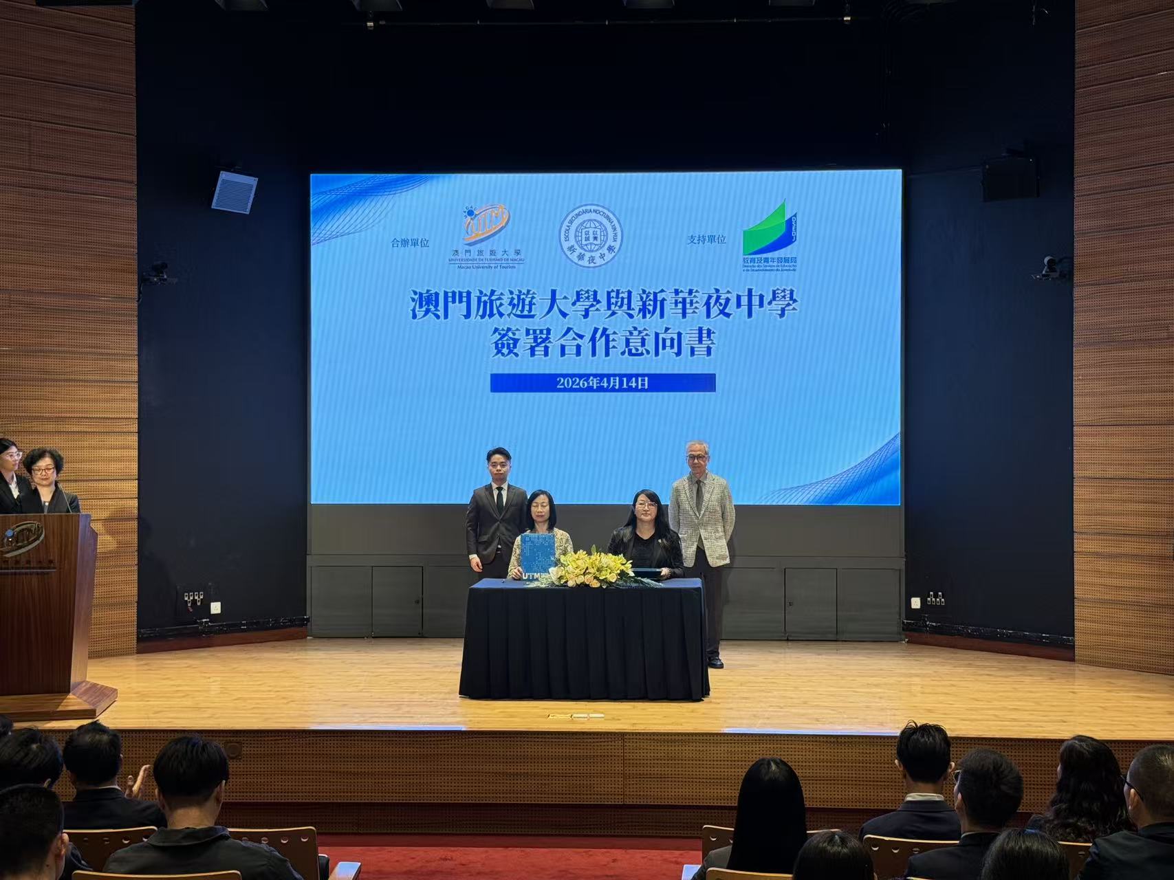 【即時新聞】為配合特區政府推動職業教育發展政策,深化高等教育與基礎教育協作,培育澳門經濟適度多元發展所需的專才,在教青局的支持下,澳門旅遊大學今與化地瑪聖母女子學校、聖若瑟教區中學第五校、新華夜中學、澳門工聯職業技術中學舉行合作意向書簽署儀式,為四所中學量身訂製高中職業教育課程。