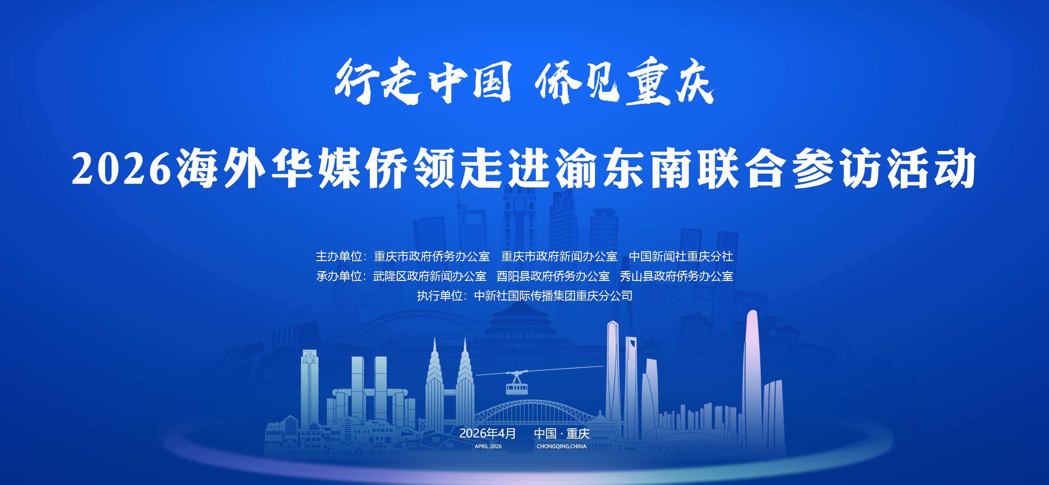 據悉,2026海外華媒僑領走進渝東南聯合參訪活動以「行走中國 僑見重慶」為主題,將於15日下午在重慶舉行啟動儀式。隨後,參訪團一行將先後走進重慶市武隆區、酉陽土家族苗族自治縣、秀山土家族苗族自治縣,聚焦其產業布局、科技創新、對外開放、特色文化旅遊、鄉村振興等,用筆觸和鏡頭,講好渝東南武陵山區高質量發展故事。