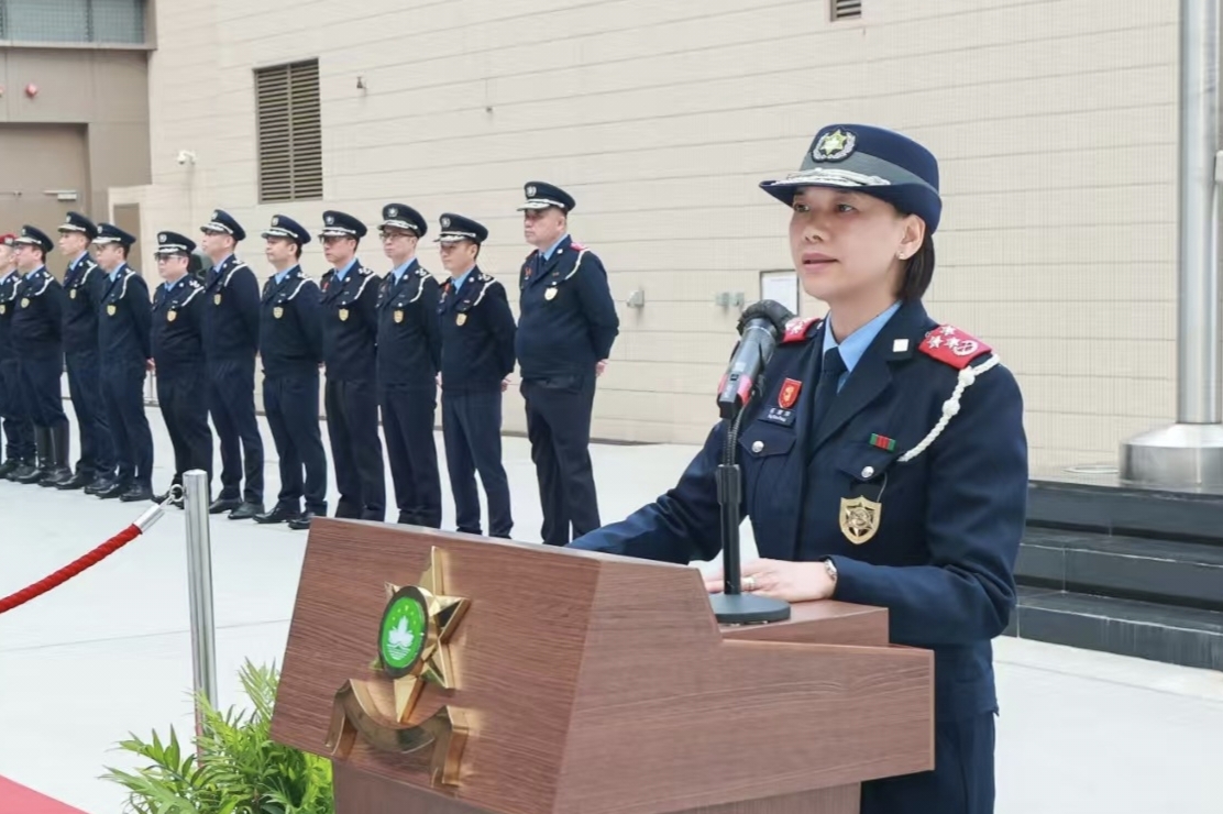 伍素萍代局長在儀式上祝賀一眾警員正式加入治安警察局,寄語他們要牢記從警初心,將所學專業知識與紀律素養運用於實際工作,在實戰中磨練本領,迎接新時代挑戰。