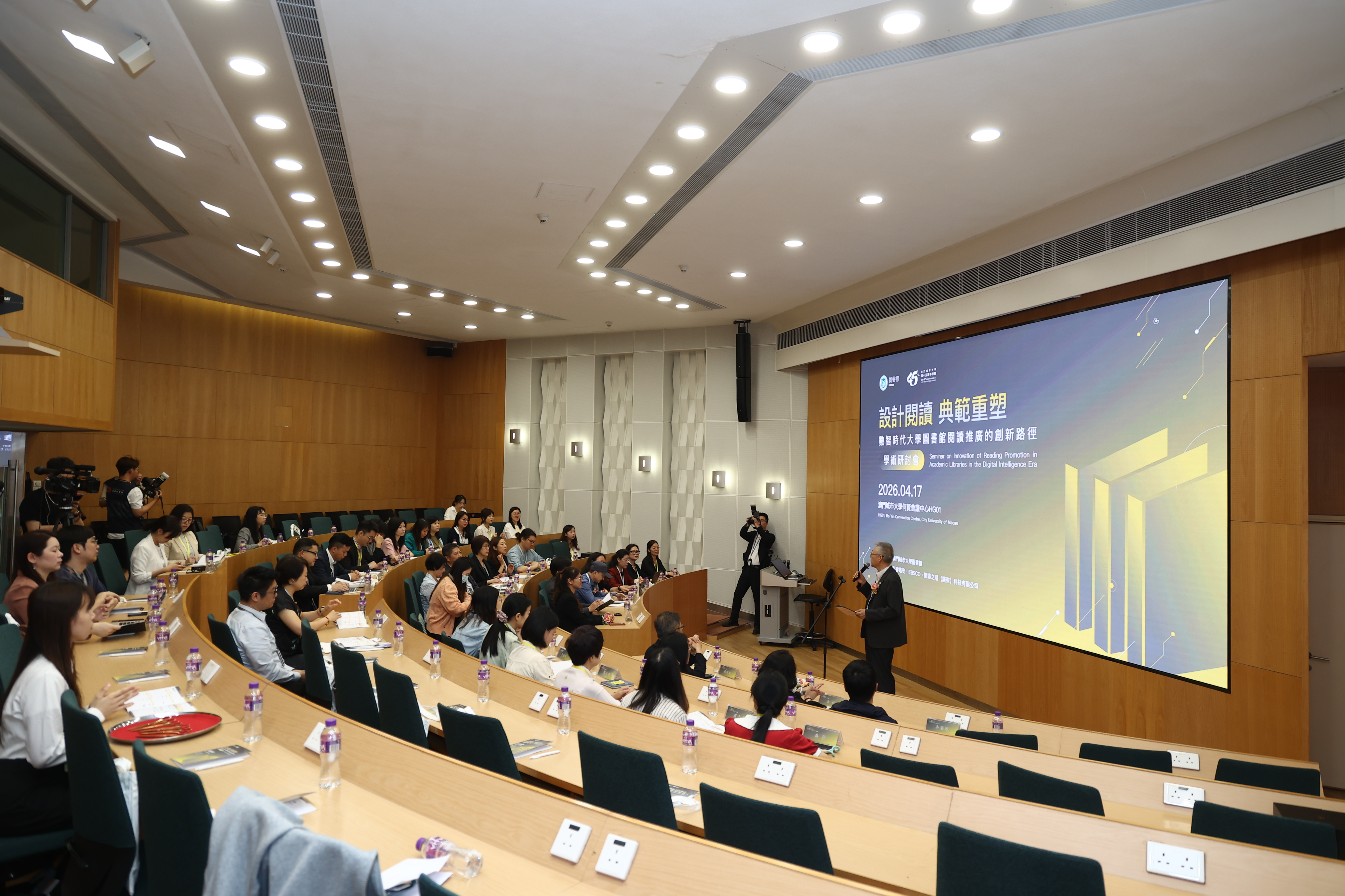 【即時新聞】澳門城市大學今日上午在城市大學何賢會議中心HG01舉行四十五周年校慶的重點學術活動之一「設計閱讀 典範重塑——數智時代大學圖書館閱讀推廣的創新路徑學術研討會」,以「設計閱讀 典範重塑」為主題,圍繞著數智時代大學圖書館閱讀推廣的創新路徑展開深入交流,並邀請8位主講嘉賓,分別從理論建構、技術應用、品牌運營、美育融合等多元視角,帶來八個主題鮮明、內容豐富的主旨報告。