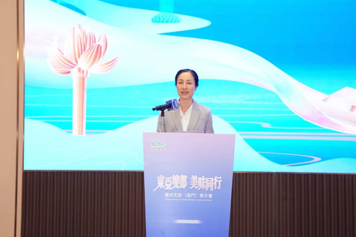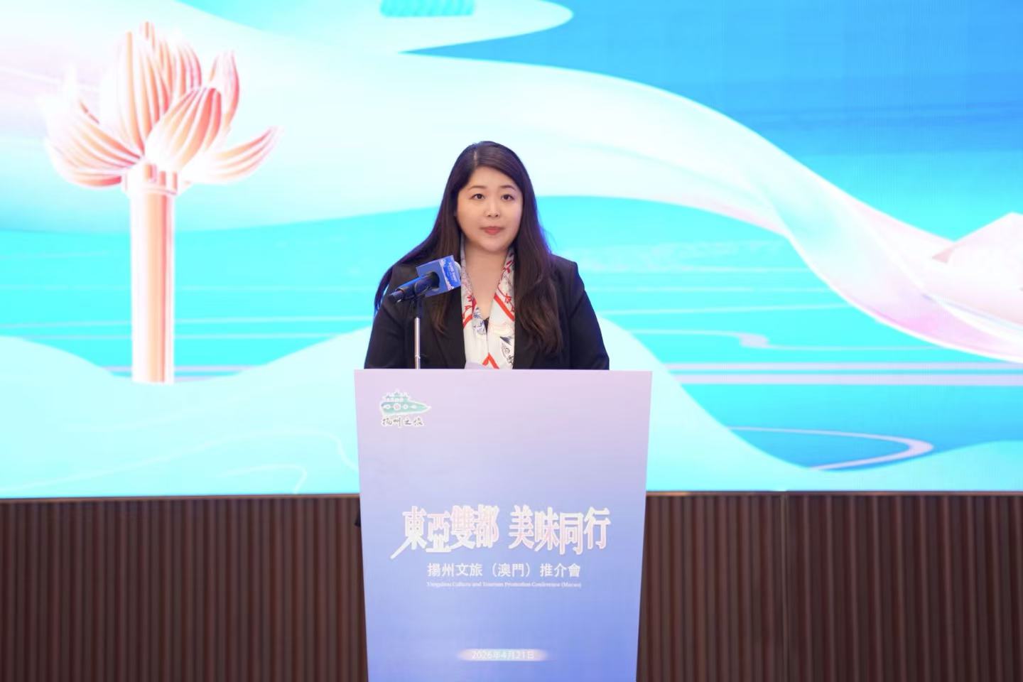 司徒琳麗在致辭中提到,此次揚州以“東亞雙都 美味同行”為主題在澳門舉辦文旅推介活動,重點介紹當地精品文旅線路、非物質文化遺產、特色美食以及全域旅遊產品等項目,相信可讓澳門業界和市民更深入瞭解揚州豐富的旅遊資源,也希望澳門與揚州能進一步拓展文旅合作,推動客源互送,促進旅遊經濟發展,實現互利共贏。