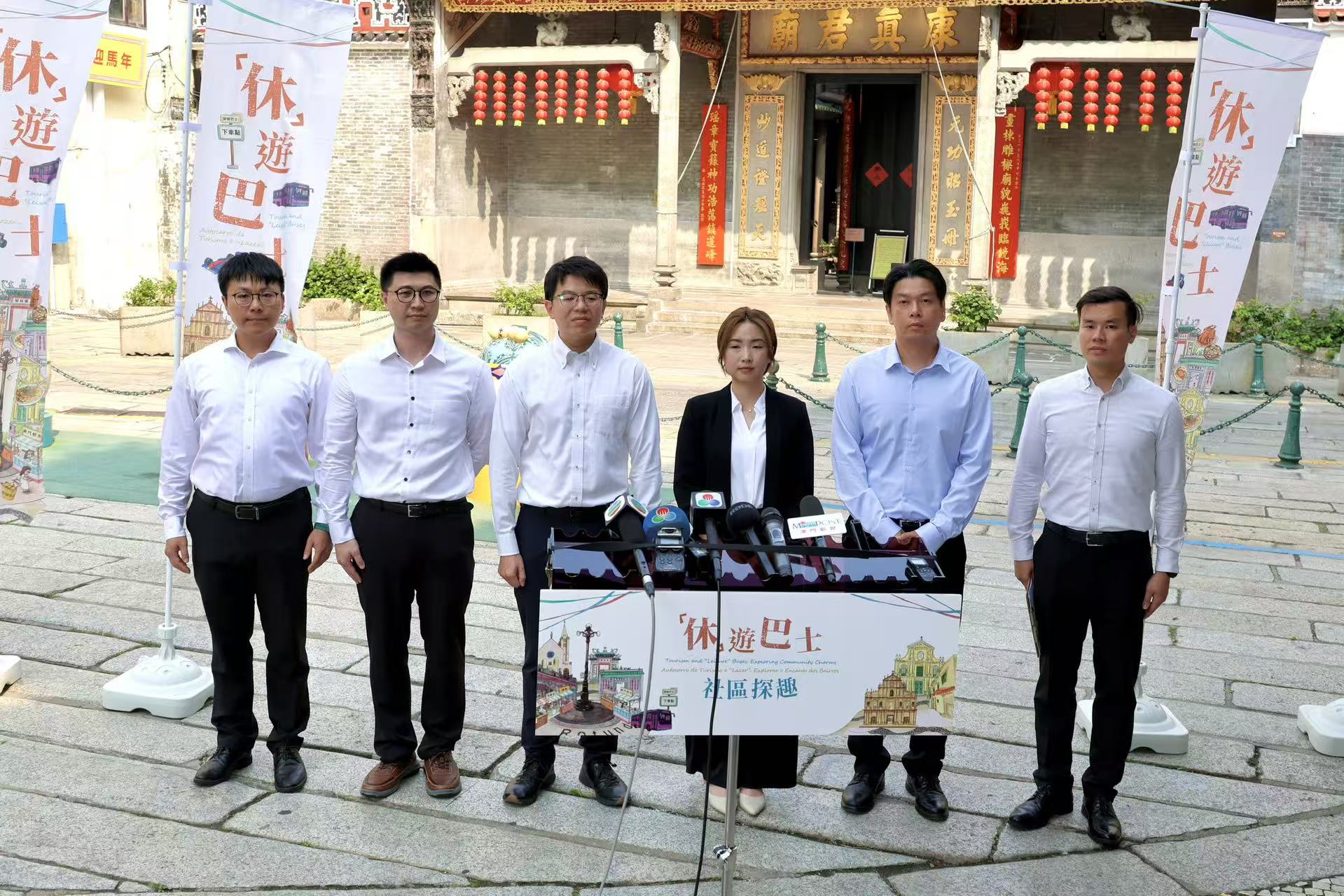 【即時新聞】為促進社區經濟發展及社區中小企拓流引客,特區政府協同六大綜合度假休閒企業推出《「休」遊巴士·社區探趣》,經科局、旅遊局、博監局、交通局、治安警察局及市政署今日下午在康公廟前地舉行聯合新聞發佈會。