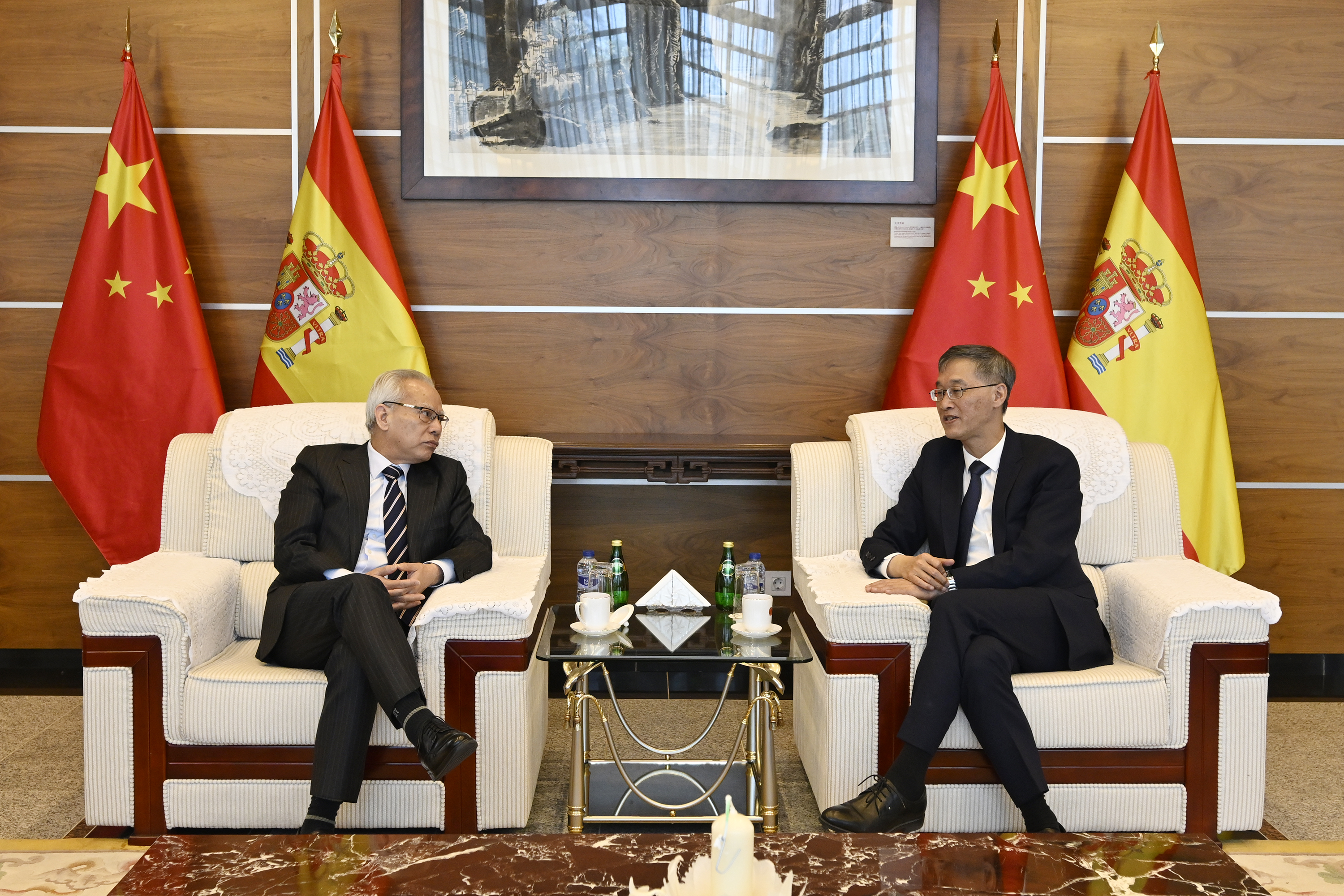 【即時新聞】行政長官岑浩輝於當地時間22日中午,在馬德里與中國駐西班牙大使兼駐安道爾大使姚敬會面,就加強雙方對接聯繫、促進澳門與西班牙的旅遊與經貿合作、延伸澳門平台至西語國家等議題交換意見。
