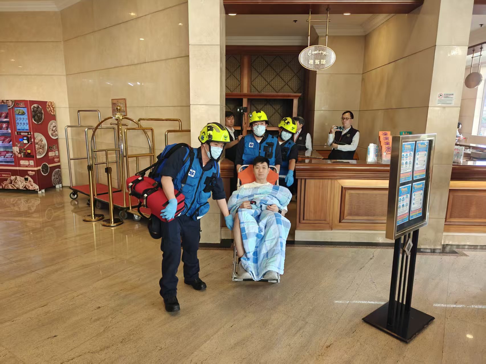 消防局人員確保現場環境安全並撤離,酒店負責人安排其餘沒有受傷的住客返回房間休息。火警期間,有1名住客因吸入濃煙不適,而須送往仁伯爵綜合醫院治療,除此之外,沒有其他人士感到不適及需要送院。