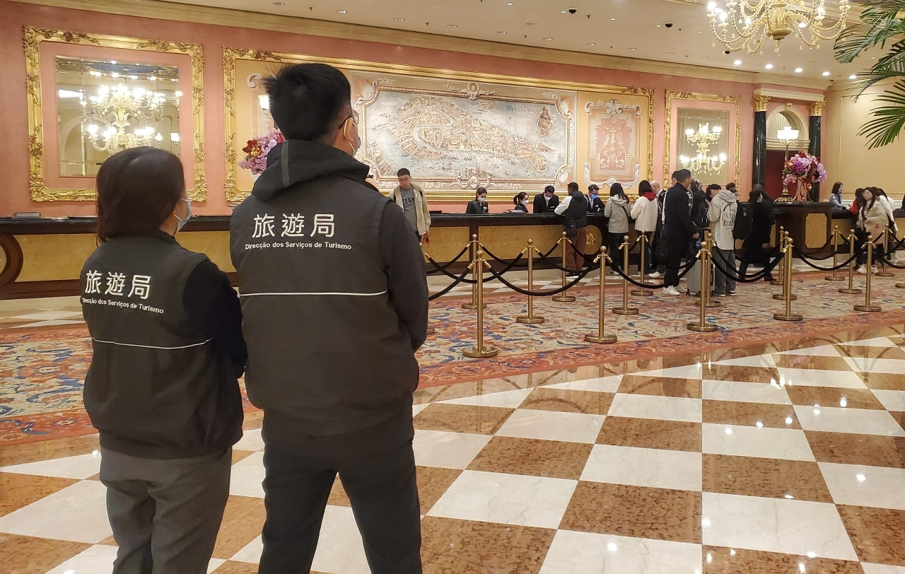 旅遊局於2月10至17日期間在各出入境口岸、旅遊景點、購物點及酒店業場所等共進行103次巡查,過程中未有發現違法行為,同時,旅遊局與治安警察局聯合打擊非法提供住宿活動,並於上述期間查封1個懷疑用作非法提供住宿的單位。旅遊局督察24小時候命,旅客詢問處為旅客提供資訊,旅遊熱線(853)2833 3000 如常24小時運作。旅遊局上述期間共接獲30宗旅客查詢及投訴,主要涉及酒店預訂、服務態度、衛生問題、交通、食肆及購物等方面,旅遊局已跟進或將個案轉介相關部門處理。