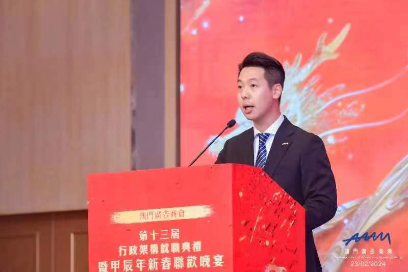 典禮上,澳門廣告商會理事長勞錦輝發表致辭。他表示,新一屆行政架構將積極傾聽會員的聲音和需求,致力於為澳門廣告行業提供專業支援和服務。他強調了促進會員之間的合作與交流,共同提升廣告行業的水準和競爭力的重要性。