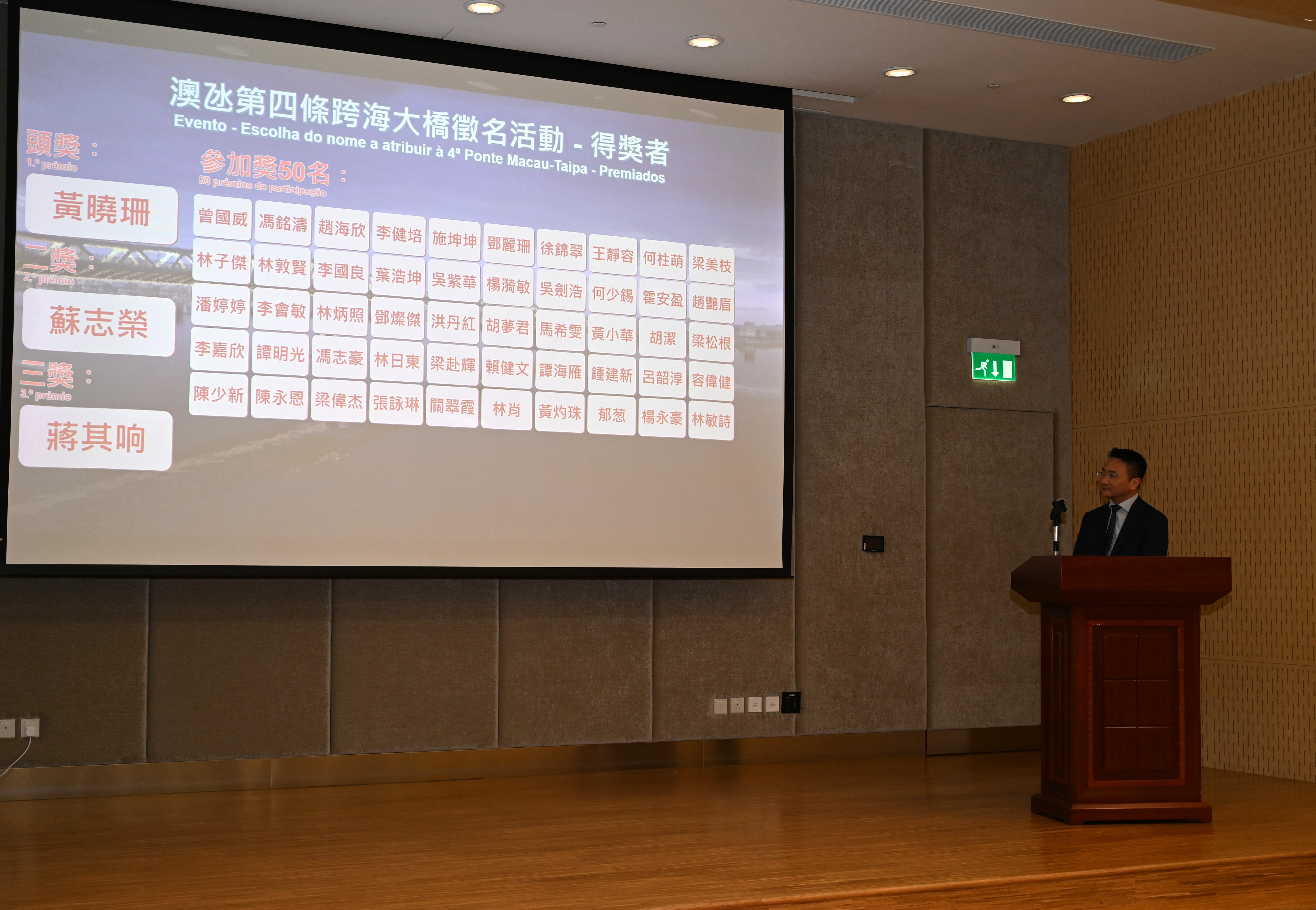 【即時新聞】澳氹第四條跨海大橋徵名活動的抽奬儀式已於今(26日)下午三時於馬交石砲台電力公司大樓地下演講廳舉行。