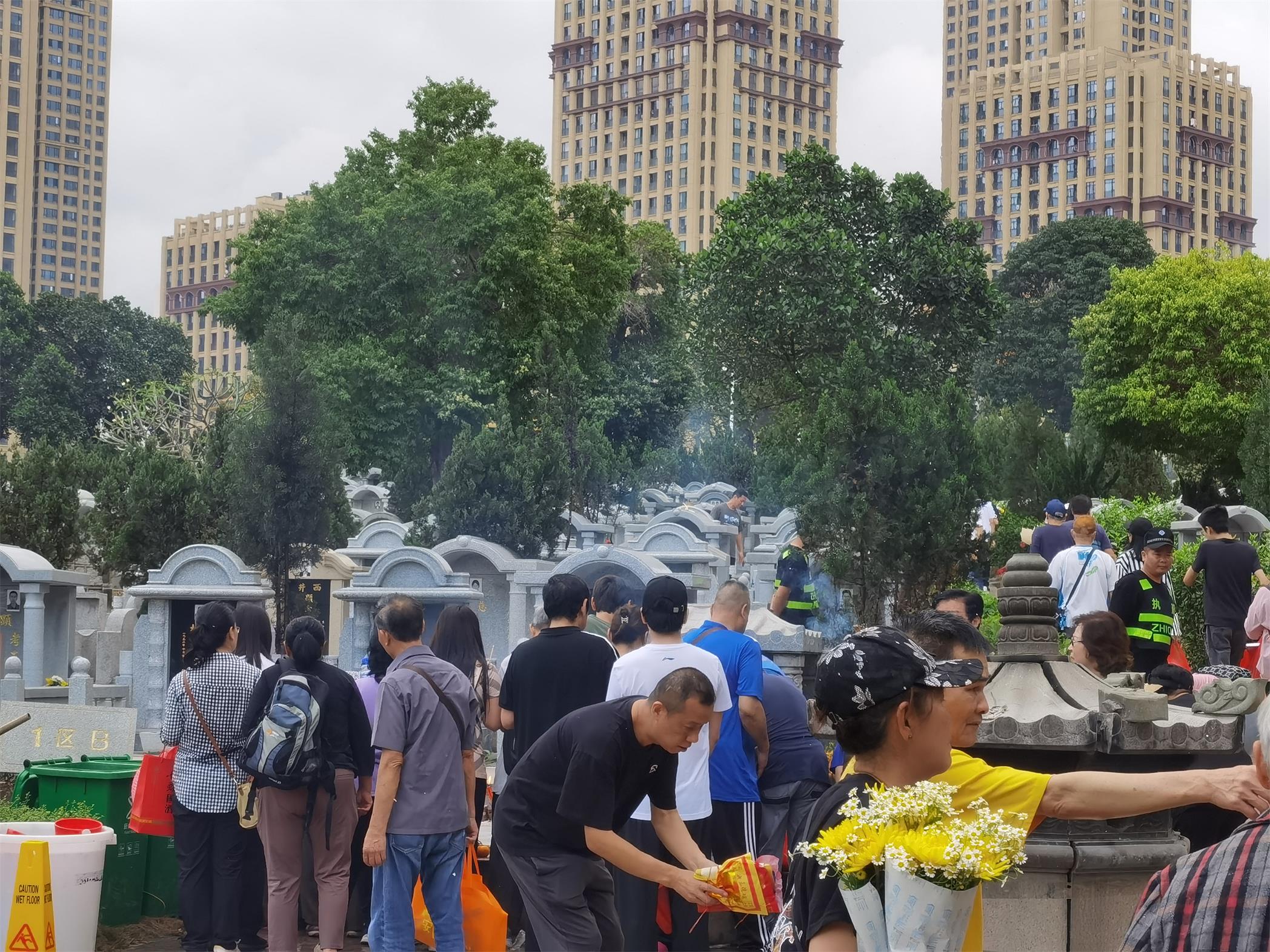 至上午10點左右,祭掃的市民從四面八方趕到,致使各大墓園進入祭掃高峰,車水馬龍。到上午10點半,所有停車場均已爆棚。合羅山墓園、仙峰山墓園等處處人滿為患。