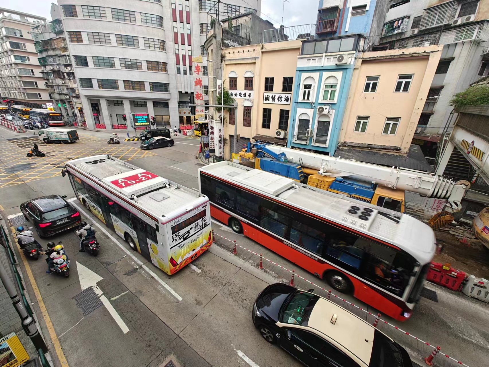 在接駁工程的首日早上,新馬路一帶的交通狀況並未出現明顯的繁忙或擁堵。現場觀察到,海邊新街對出的路口,工程設置的水馬佔用了新馬路左側往下環方向的部分車道,但未對整體交通造成顯著影響,新馬路往火船頭街方向的交通仍然保持大致正常。