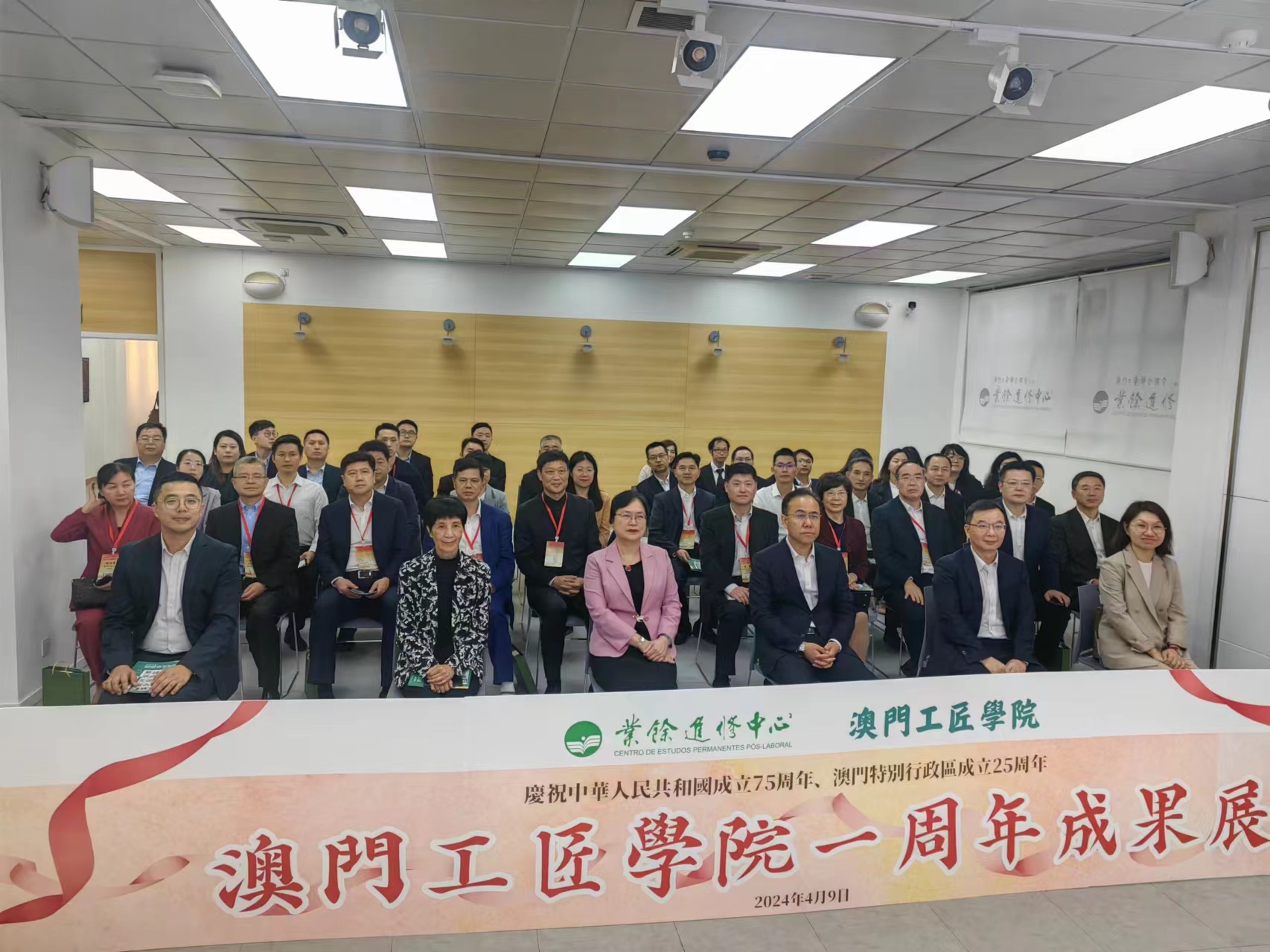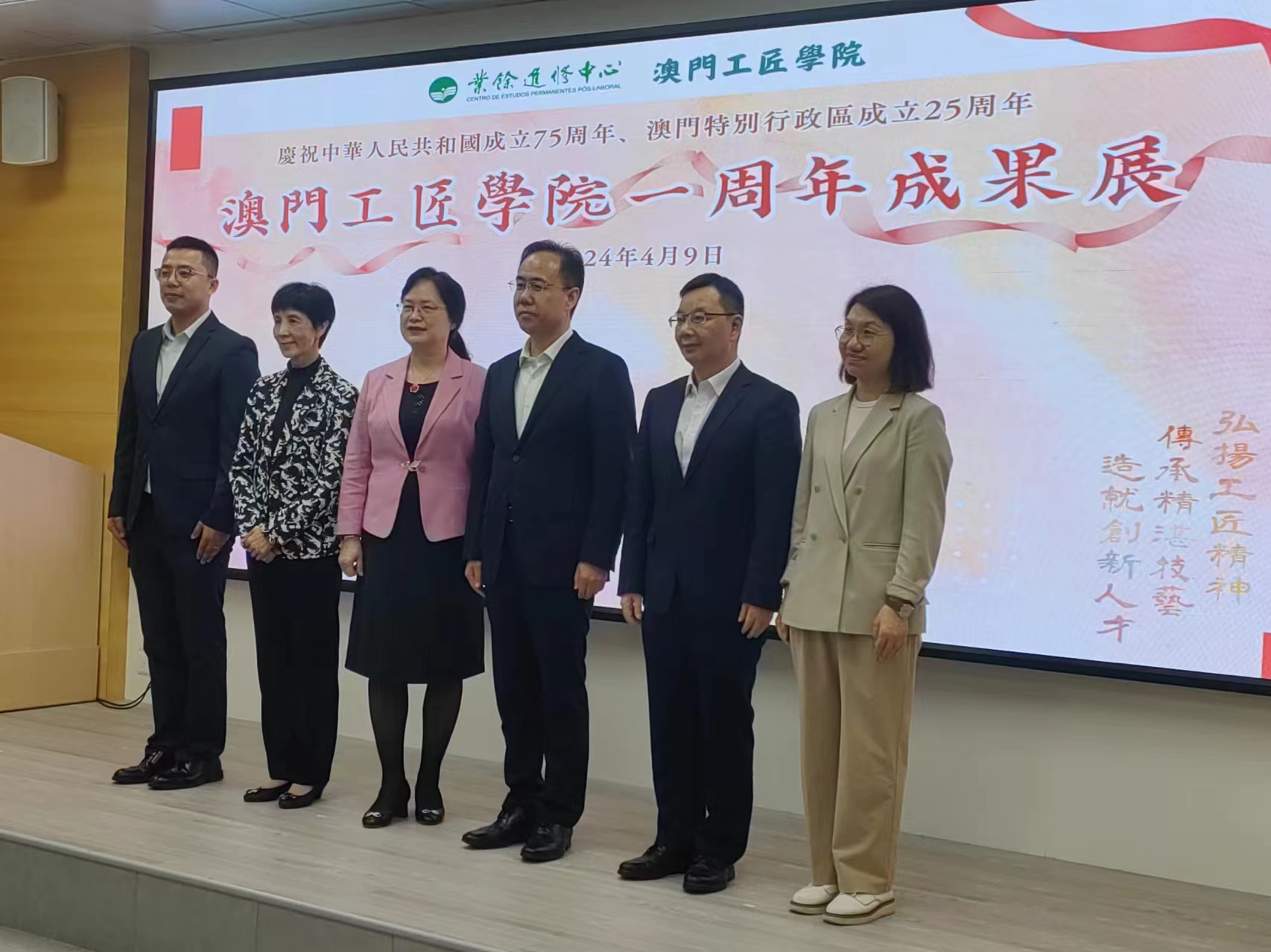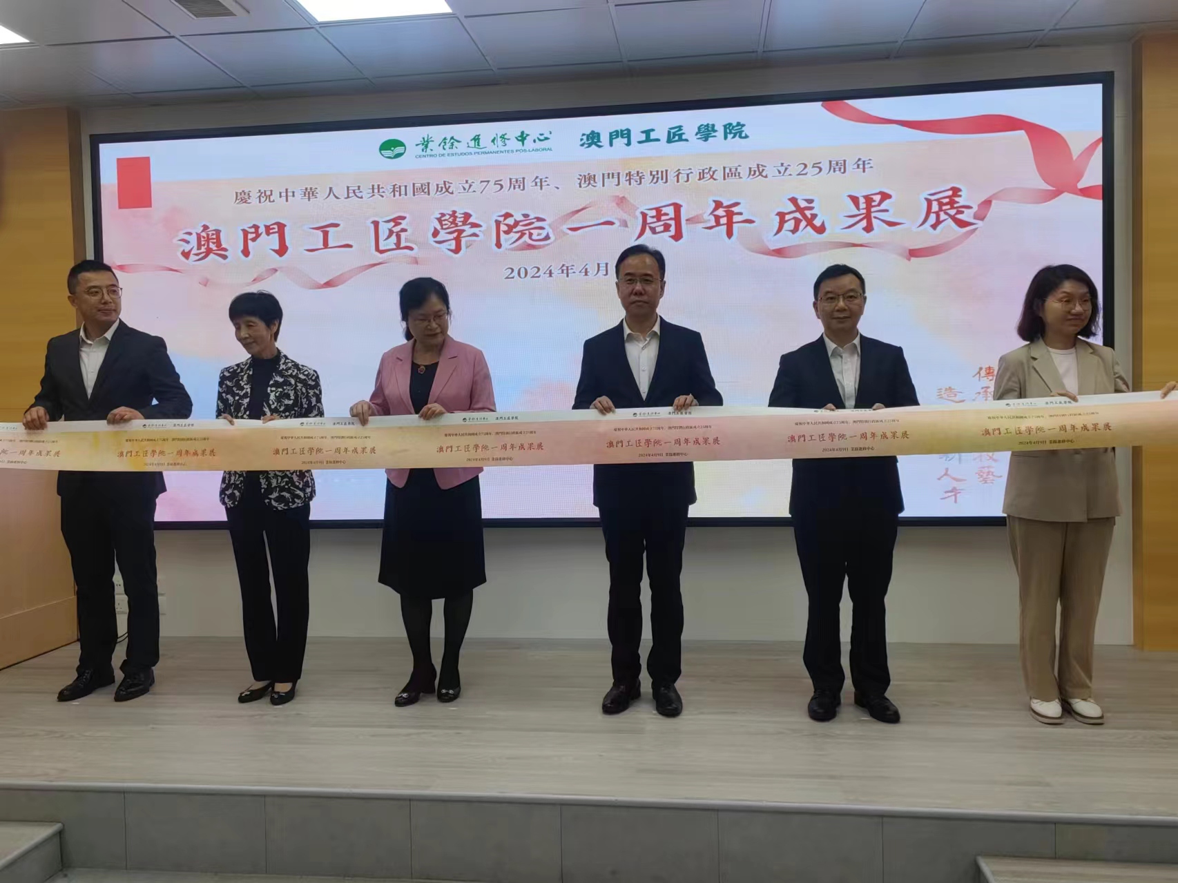 【即時新聞】由業餘進修中心主辦的“慶祝中華人民共和國成立75周年、澳門特別行政區成立25周年暨澳門工匠學院一周年成果展",下午在禮堂舉行啟動儀式,通過商業及旅遊攝影、創意廣告短片、課程教學花絮圖片展、中華文化與服飾配搭作品展、學員學習心得分享區等多個主題展區,以多元方式展示不同範疇課程的學員成果作品,期望藉此讓學員努力的成果獲得肯定和欣賞,亦提升社會大眾對澳門工匠學院的認識。