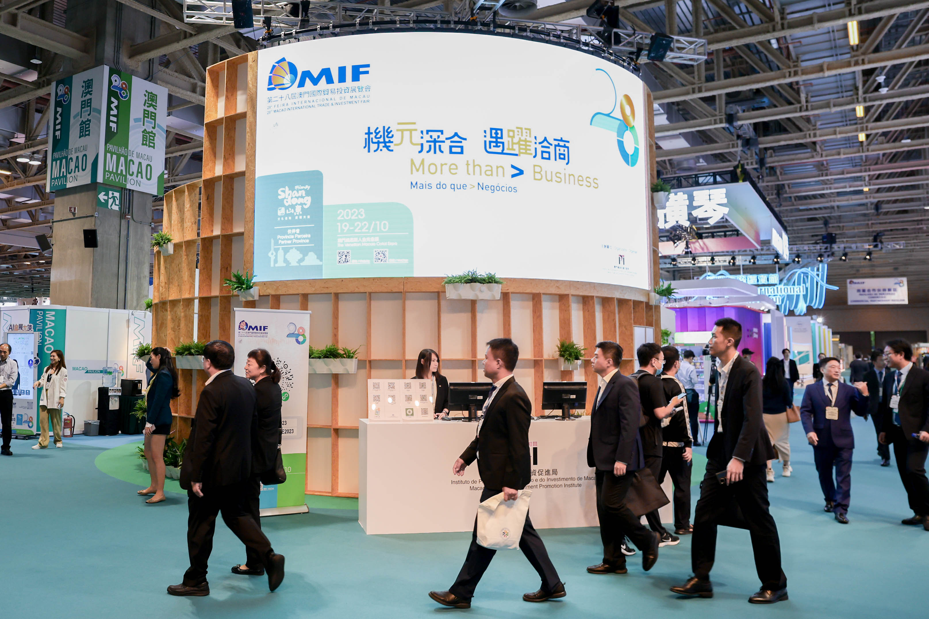 【即時新聞】「第一屆中國—葡語國家經貿博覽會(澳門)」(1.a C-PLPEX)、「第二十八屆澳門國際貿易投資展覽會」(第28屆MIF)、「澳門國際品牌連鎖加盟展2023」(2023MFE)昨日拉開帷幕。三展20個展區,超過60場活動一連四日發揮「產業+會展」動能,搭建會展平台締結各界商機。