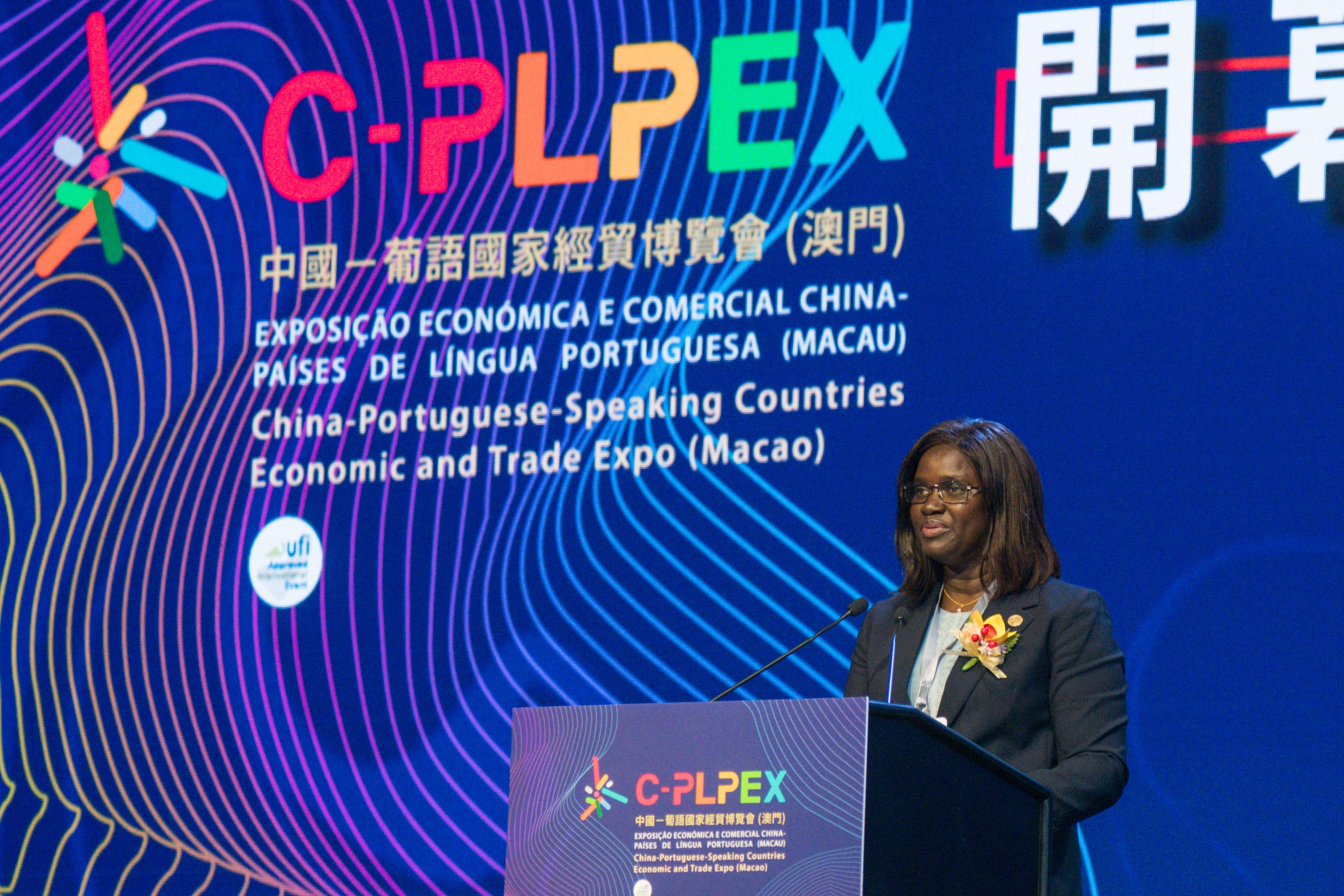 Mussubá Canté致辭時表示,澳門特別行政區發揮中葡平台作用,1.a C-PLPEX吸引了各國企業參與,擴大商品和服務出口市場,齊頭並進,發揮優勢,為中國內地、澳門特別行政區以及各葡語國家之間的經貿關係創造協同效應。在「一帶一路」倡議框架下,中國及葡語國家一定可以在產能合作方面發現更多機遇,共同推動雙方經濟繁榮發展,促進經貿合作。