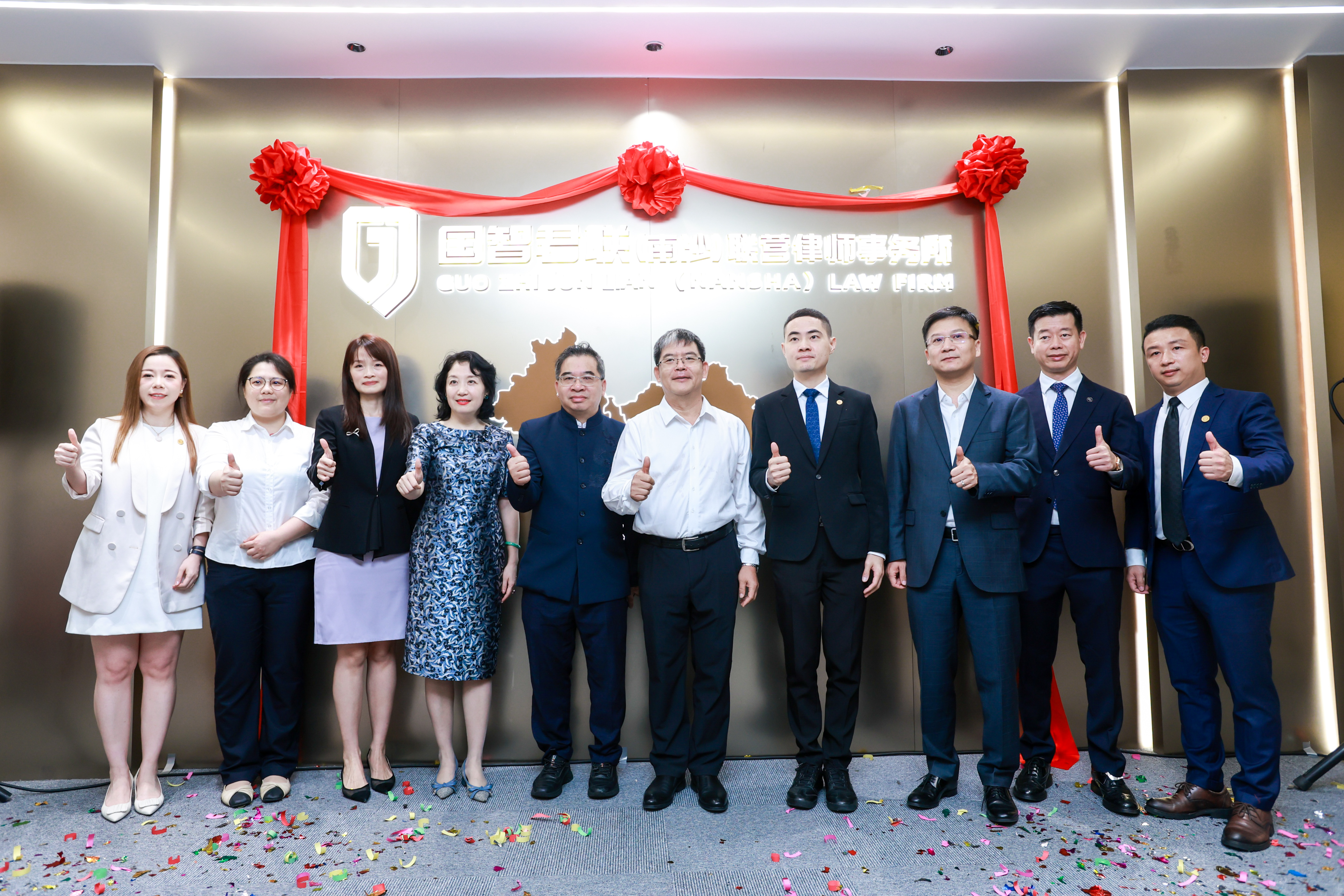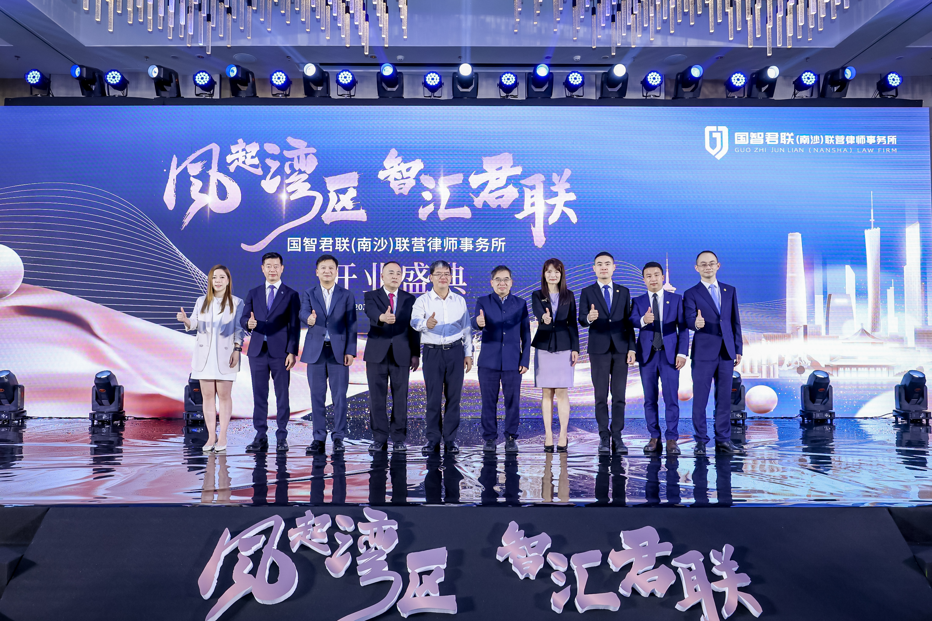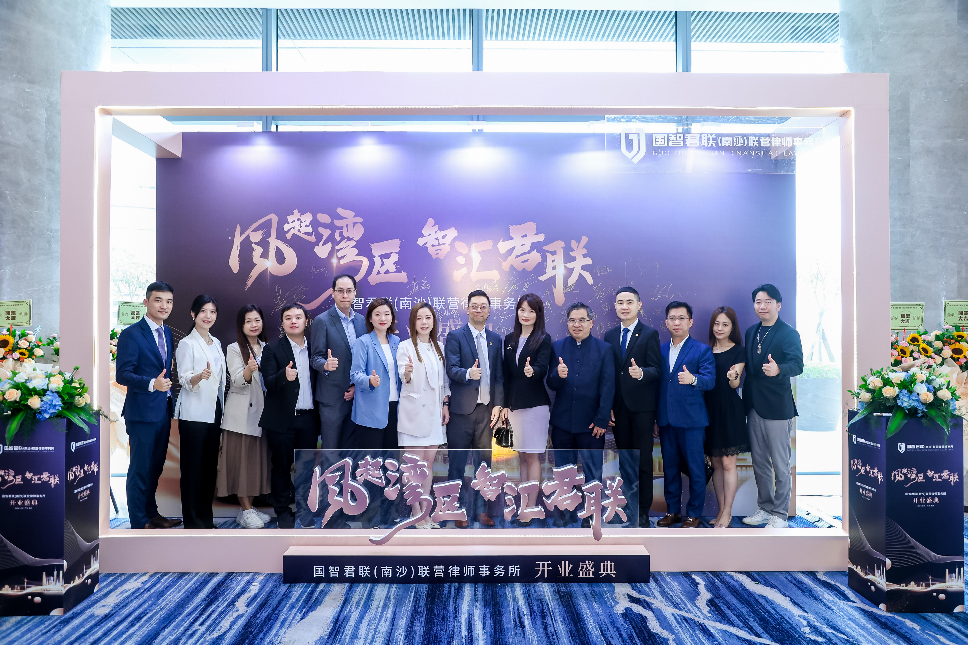 澳門中聯辦協調部二級巡視員布志光、澳門法務局法律翻譯廳廳長李詠儀、澳門立法會議員李良汪、廣州市南沙區人大常委會主任李德球、廣州市南沙區司法局局長曾普光、廣州市南沙區僑聯主席方新宇、廣州市律師協會副會長陳健斌、福建省政協委員陳禮祺、陳曉雷、國際青年商會中國澳門總會會長王鎮、澳門青年創業協會會長葉朝輝等嘉賓到賀,參與揭牌、開業啟動儀式。
