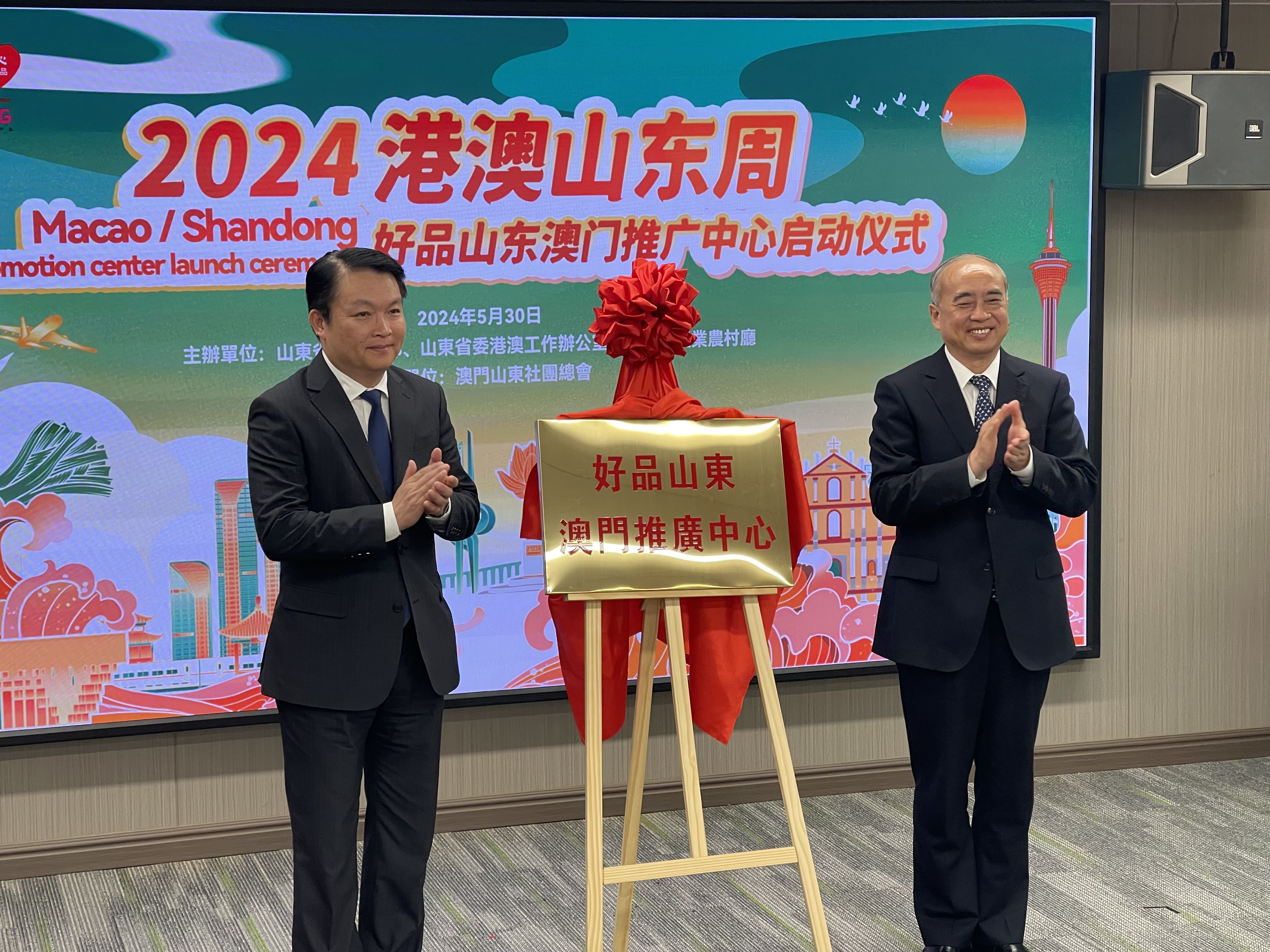 【即時新聞】由山東省委統戰部、山東省委港澳工作辦公室、山東省農業農村廳共同主辦的好品山東澳門推廣中心啟動儀式在澳門山東社團總會舉行。山東省委書記林武和澳門特區政府經濟財政司司長李偉農為好品山東澳門推廣中心揭牌,澳門中聯辦副主任呂玉印,外交部駐澳公署特派員劉顯法,山東省委常委、秘書長範波,山東省副省長宋軍繼出席儀式,並見證山東省農業農村廳與澳門山東社團總會簽署共建推廣中心協議。