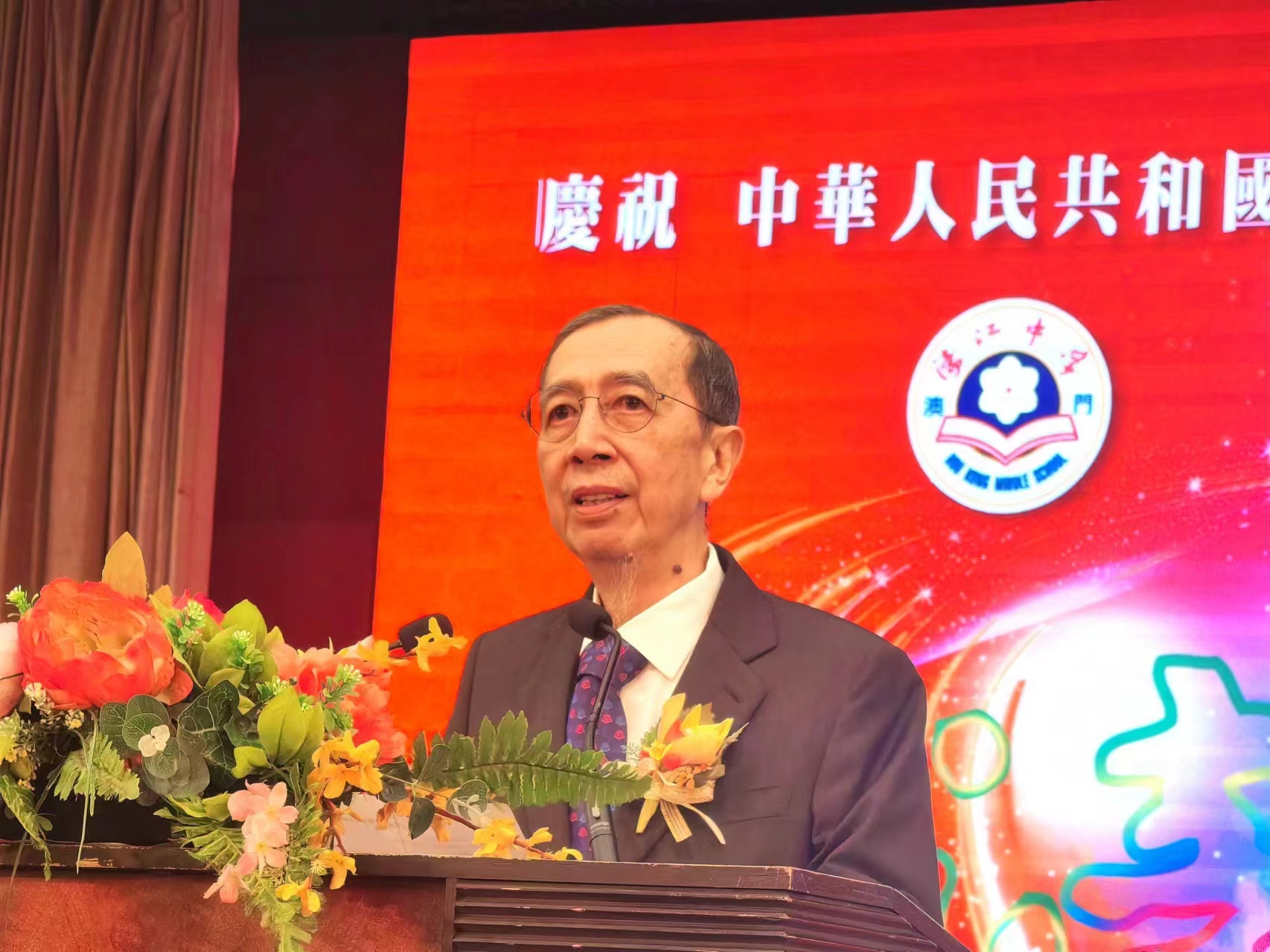 他稱,濠江中學繼前年榮獲特區政府頒授教育功績勳章後,去年學校四位學生因在科創發明上的優異成績而榮獲特區政府頒授功績獎狀。今年九月,濠江中學附屬橫琴學校將正式開學,受到社會各界,尤其是家長的關注,招生情況理想。濠江中學與時俱進,不斷發展,辦學質量得到社會和家長的肯定及認同,倍感鼓舞,更覺責任重大。近年學校堅持推進教育改革,成果顯著,在PISA 2022和 PIRLS 2021 測試中,學校學生成績優異,在本澳及國內外各類型比賽中,同學們更是收獲滿滿,屢獲殊榮。今年學校保送再創佳績,保送到國內重點大學佔畢業生人數55%,其中包括清華大學、北京大學各4人,復旦大學、上海交通大學各11人,充分展示了我學校與時俱進的教改成果。未來學校定必不忘初心,牢記使命,傳承愛國主義精神和有教無類的辦學理念,在創新中謀發展,為推動新質生產力,加快發展貢獻新時代教育力量,為祖國和澳門培養優秀人才。
