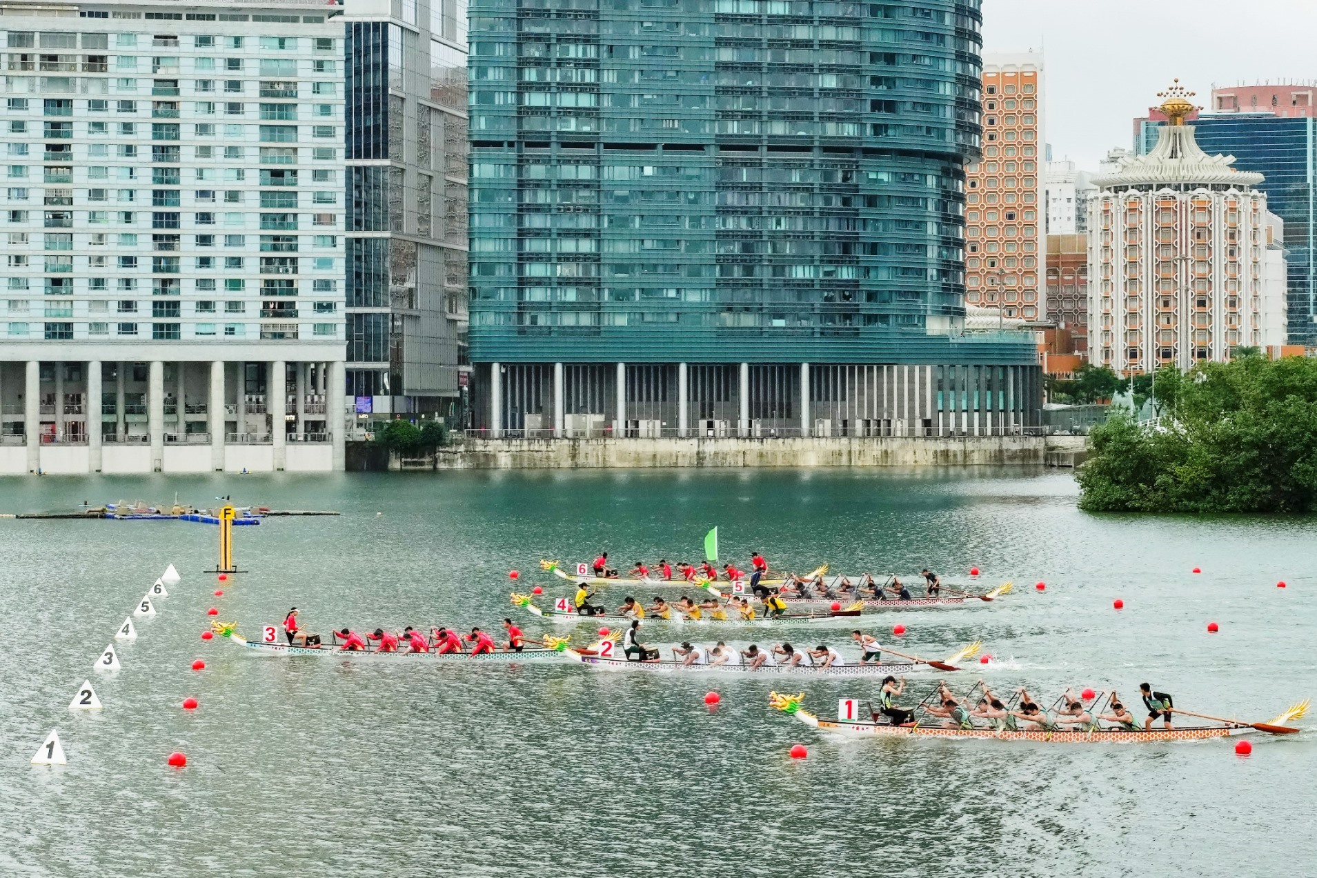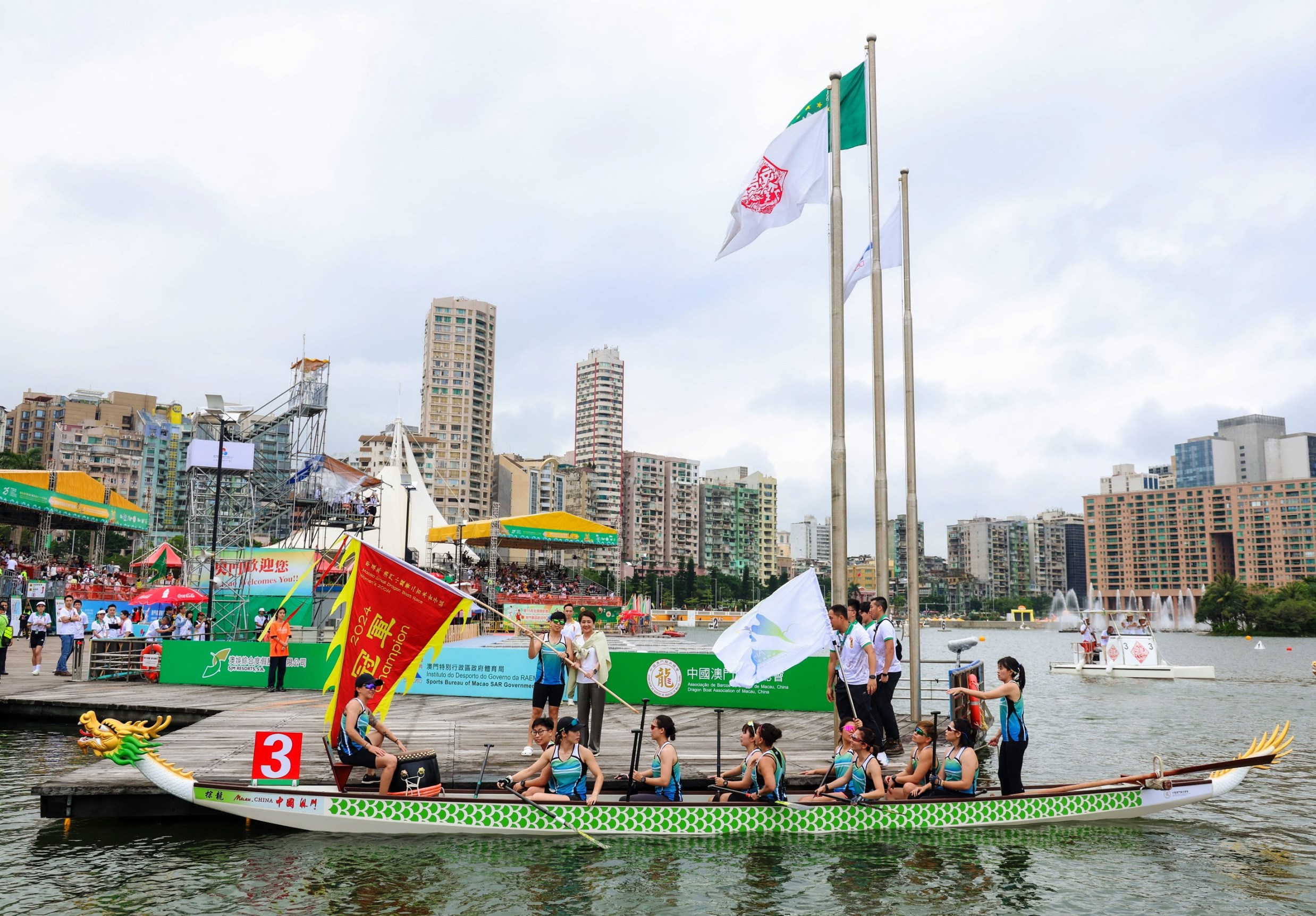 【即時新聞】由體育局、澳娛綜合度假股份有限公司及中國澳門龍舟總會主辦,市政署及行政公職局協辦的“慶祝澳門特別行政區成立25周年—2024澳娛綜合澳門國際龍舟賽”,今(8)日在南灣湖水上活動中心舉行首日賽事,公開組賽事,經一輪角逐後,消防局奪得澳門小龍賽公開組(200米)冠軍,而女子組后冠則由澳門青少年發展協會-A奪得。明(9)日將舉行澳門龍舟賽標準龍(500米)公開組及女子組賽事。