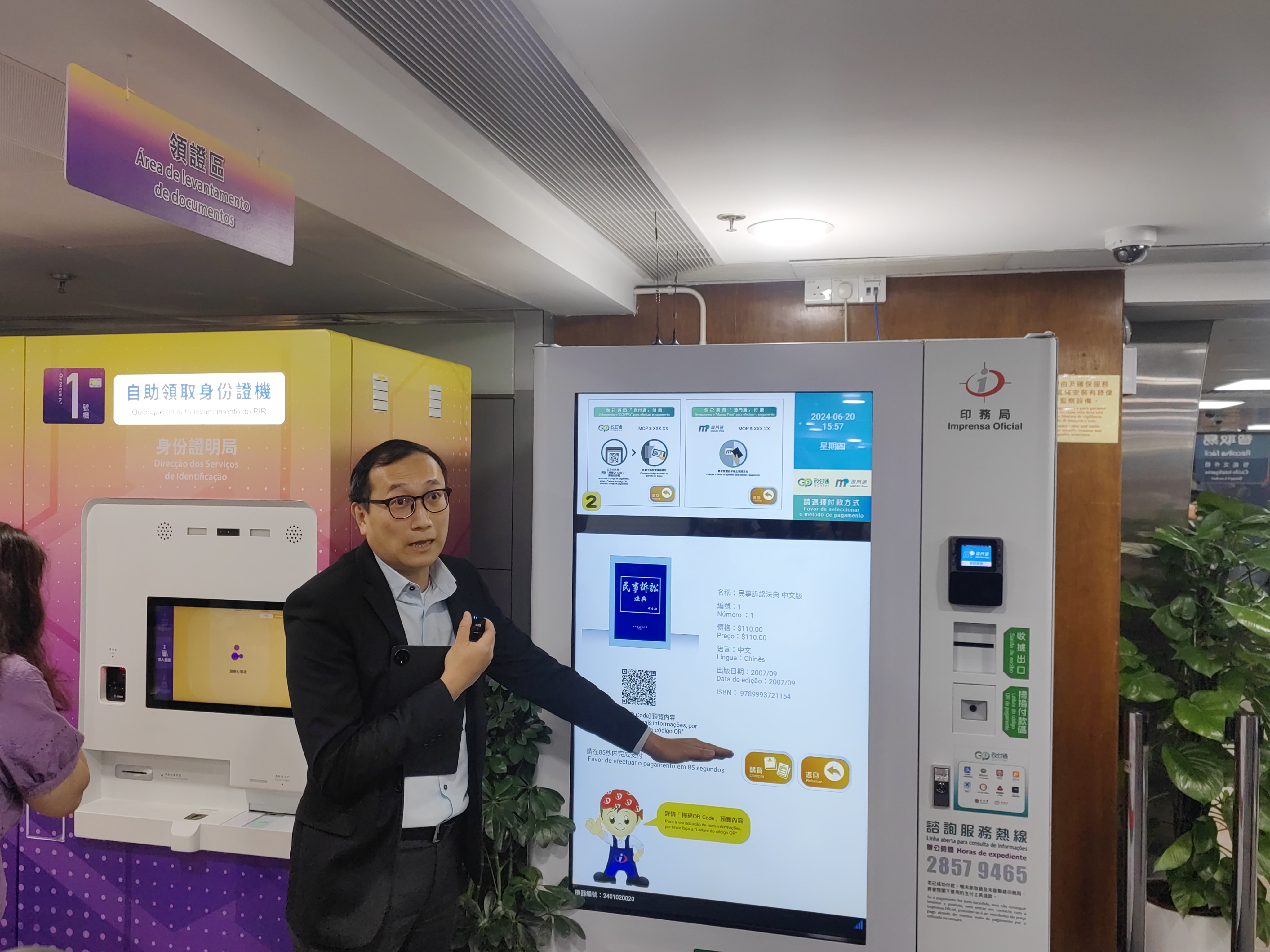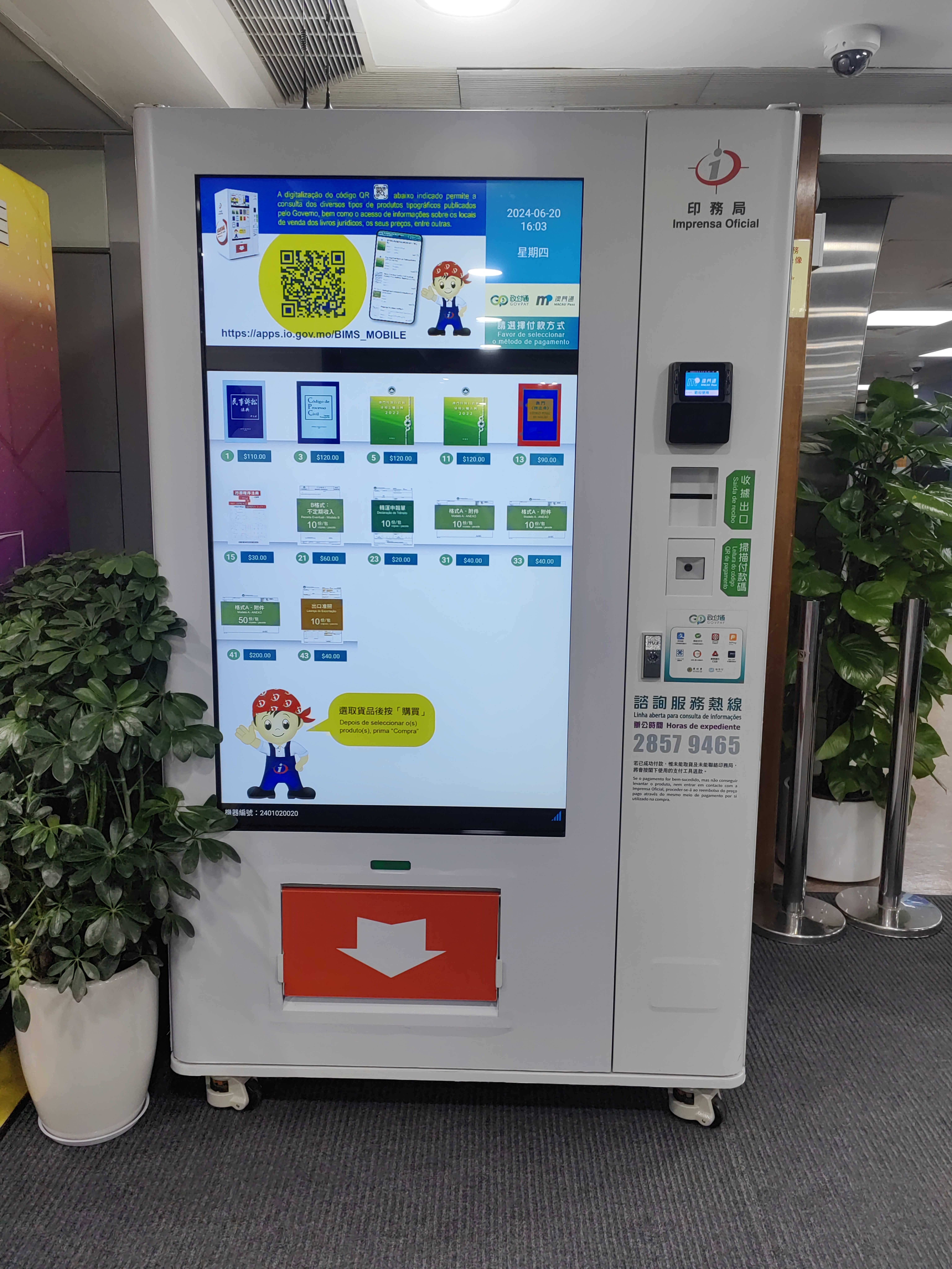 【即時新聞】為了方便市民及企業購買政府出版的印刷品,印務局今日起於5個政府24小時自助服務中心設置政府出版物售賣機,有關中心分別位於南灣、黑沙環、筷子基、湖畔以及石排灣。