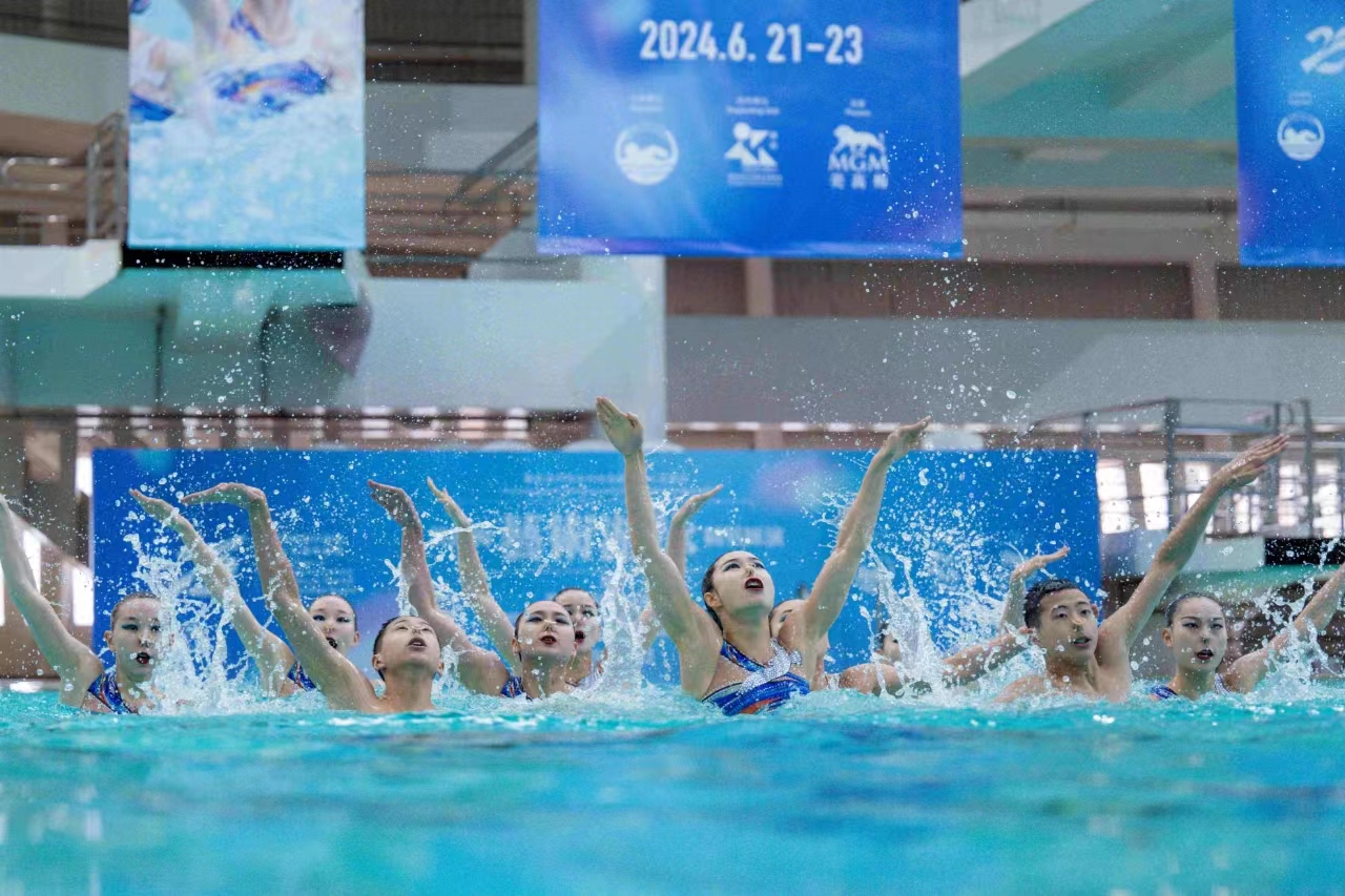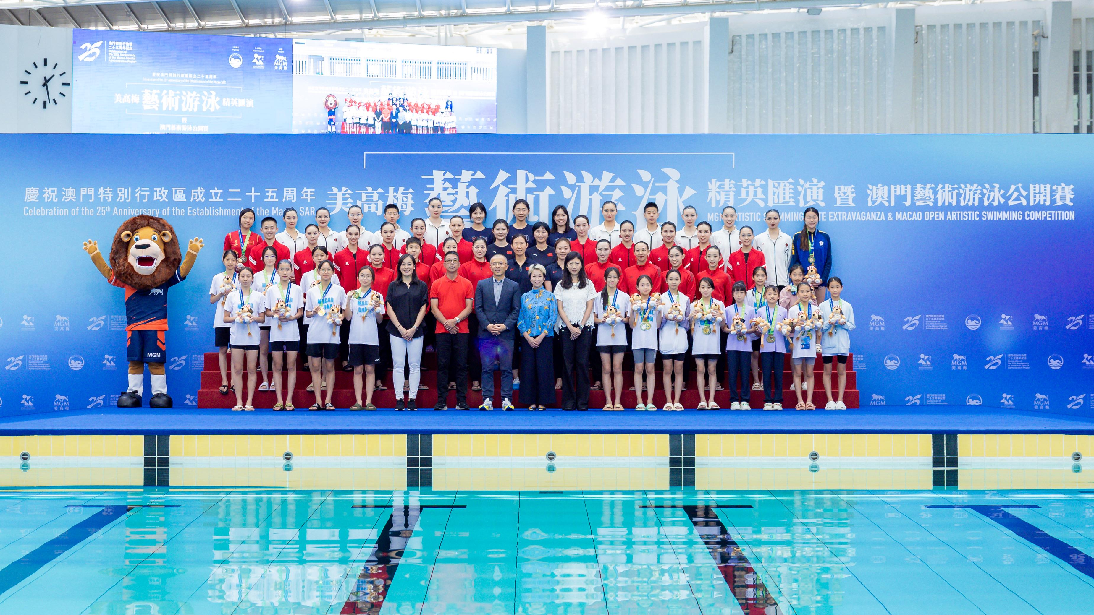 【即時新聞】由美高梅呈獻、中國澳門游泳總會主辦,澳門特別行政區政府體育局鼎力支持,一連三日假氹仔奧林匹克游泳館盛大舉行的澳門體藝文旅盛事「慶祝澳門特別行政區成立25周年 —— 2024美高梅藝術游泳精英匯演暨澳門藝術游泳公開賽」今日(23日)圓滿落幕。閉幕式上,三隊頂尖花泳隊伍「北京花樣游泳隊」、「江蘇花樣游泳隊」和「四川花樣游泳隊」再度獻上「精英匯演」,為活動畫下完美句號。美高梅於賽後首設「藝術游泳大師班」技術交流環節,讓參賽的花泳選手直接向國家級健將領教,以此打造澳門成為大灣區藝術游泳運動的重要交流平台。