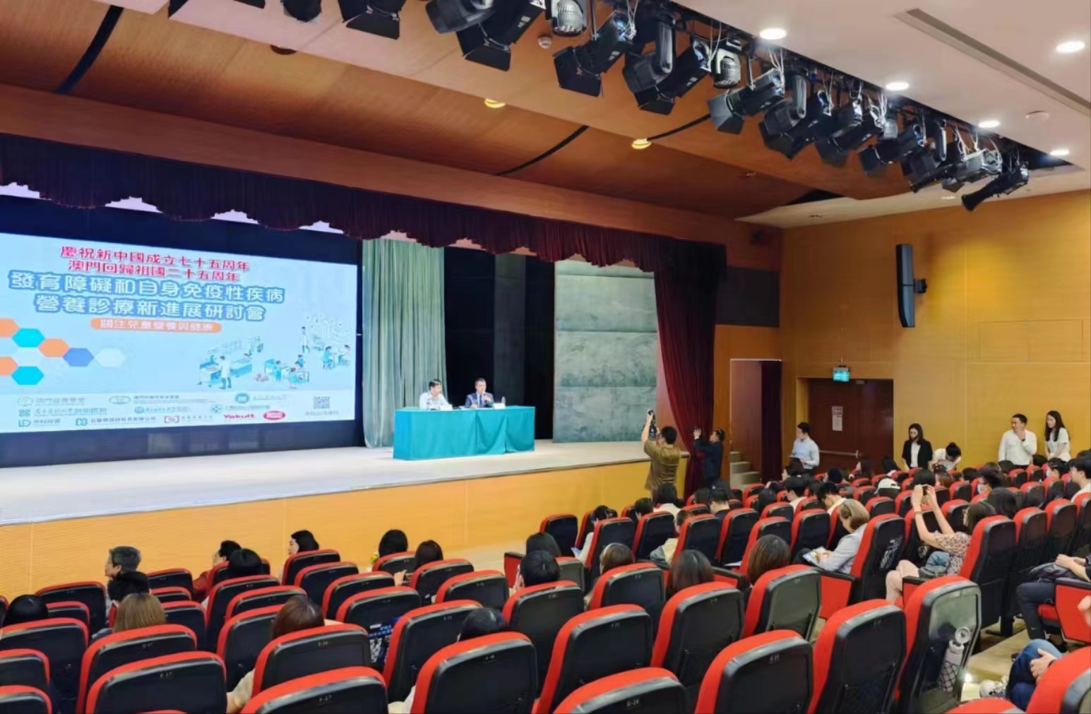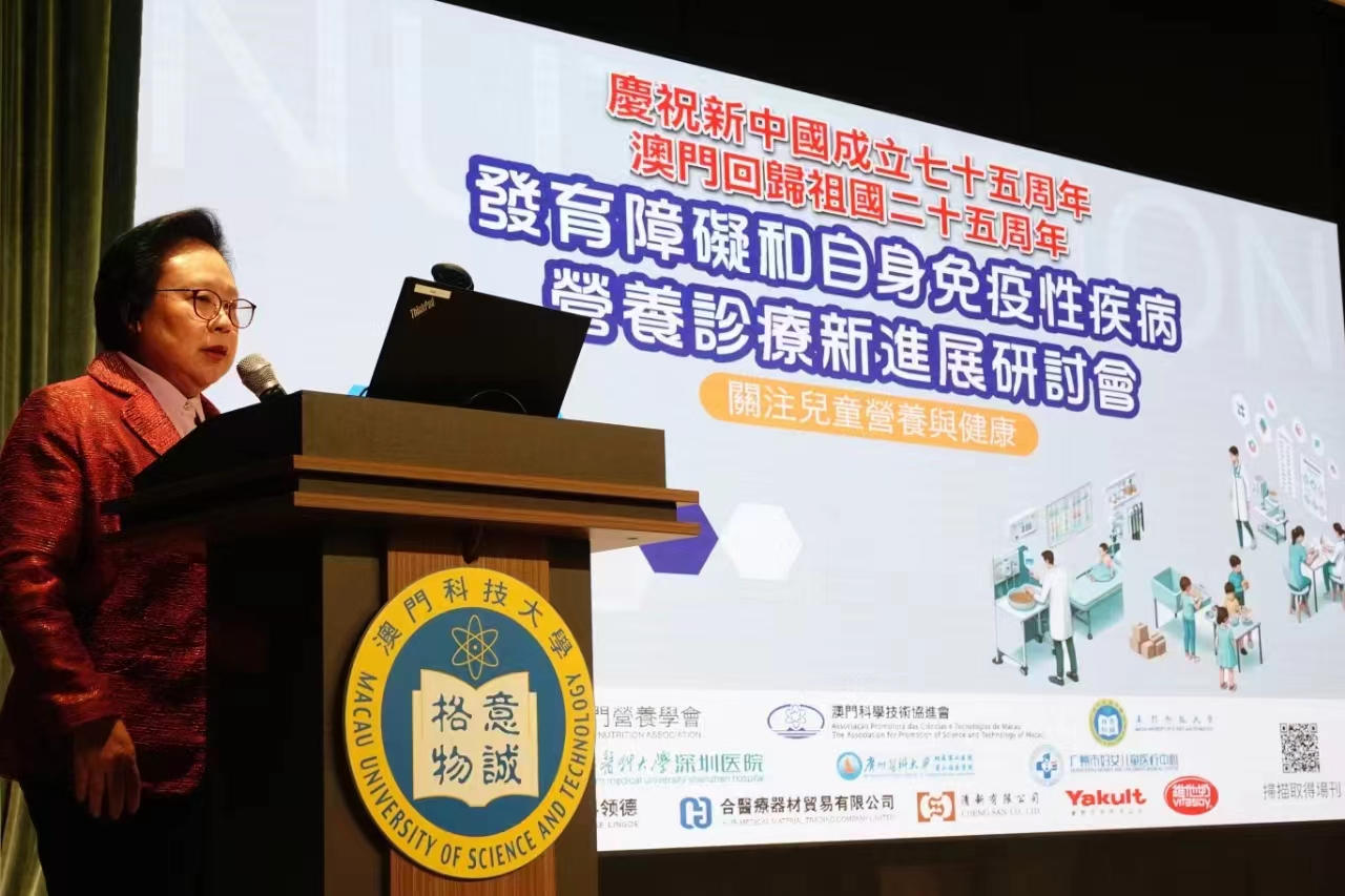 【即時新聞】由澳門營養學會主辦,澳門科學技術協進會協辦和澳門科技大學藥學院支持的「發育障礙和自身免疫性疾病營養診療新進展研討會」今日上午假澳門科技大學D座禮堂舉辦。研討會圍繞「營養等醫學治療與健康促進的新進展」為主題,針對發育障礙和自身免疫性疾病的營養與健康等問題開展學術交流,分享廣東省臨床營養等臨床醫學科學應用的成功經驗,加強粵澳營養及醫學科學的研究合作。來自澳門各醫院和醫療機構的醫療專業人士以及營養科學、食品科學等相關行業和大專院校、政府部門、新聞媒體等各界的專家學者出席。