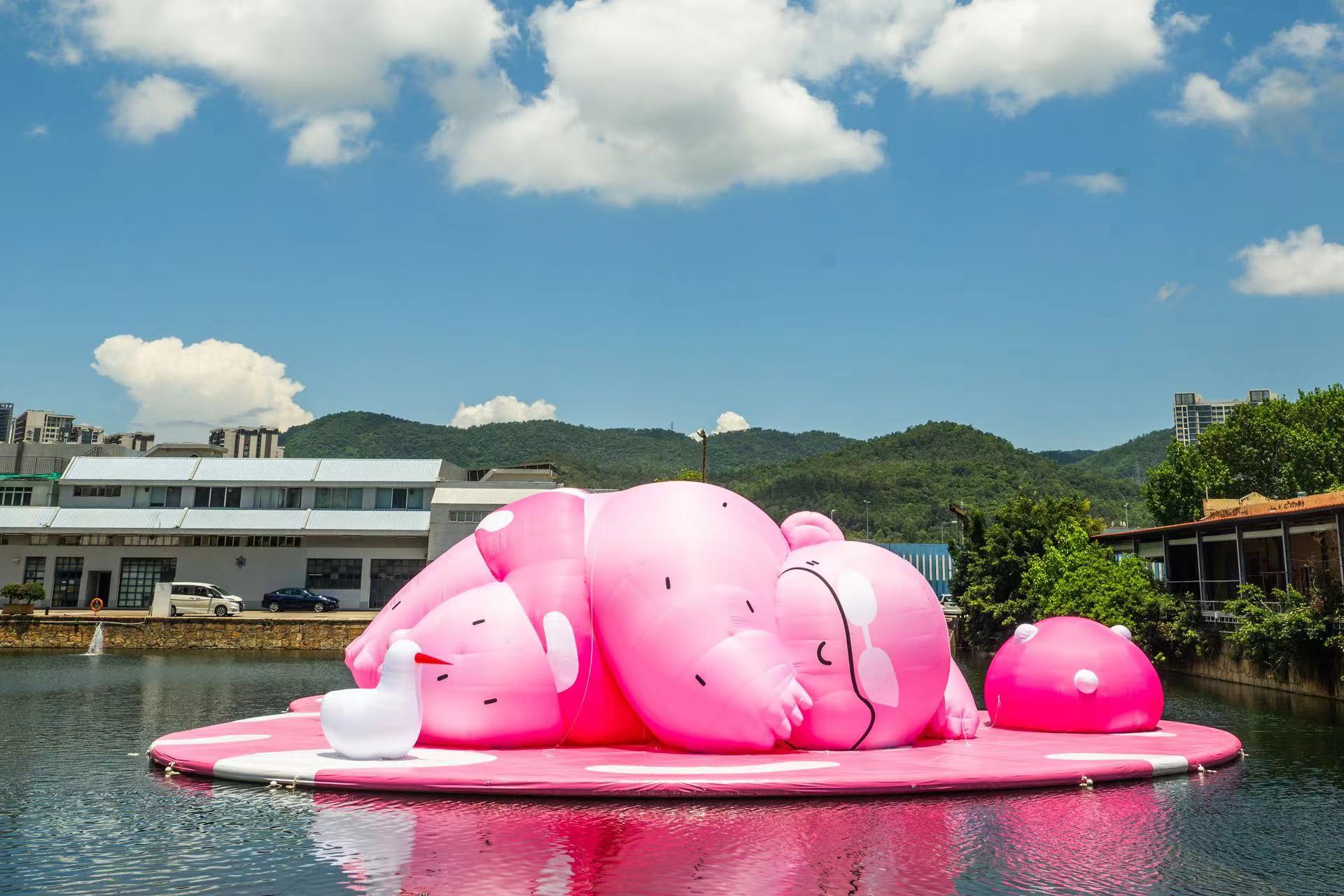 分享會後,系列頭炮活動—大型公共充氣藝術裝置《BERTILO粉小胖游塘》舉行開幕儀式,社會文化司司長歐陽瑜等嘉賓出席。