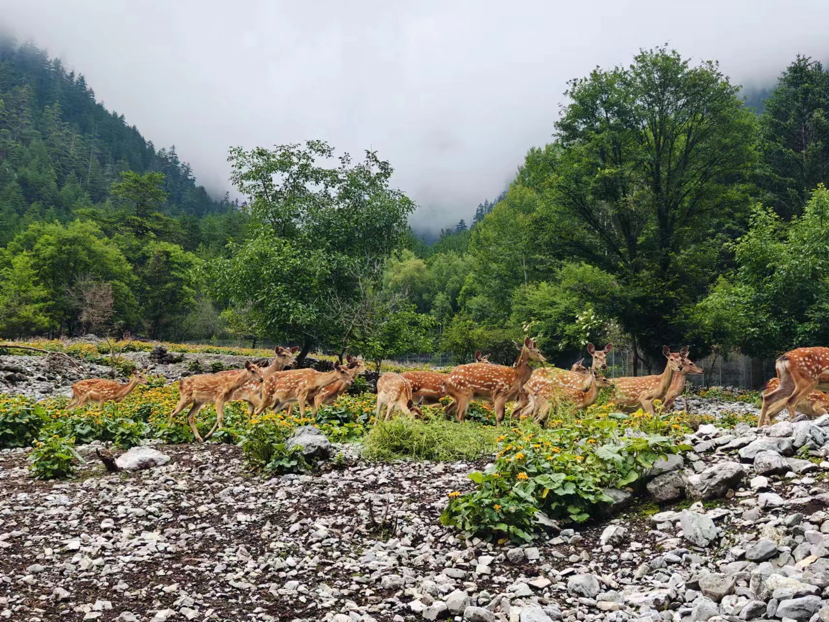 採風團一行上午先到「樹正溝」沿著長1800米的「樹正自然研學線路」參觀了「樹正瀑布」、「樹正群海」、「臥龍海」和「火花海」,線路以「樹在水中長,水在林中流」的獨特景觀為主線,不僅可以聆聽水的聲音,也能欣賞樹抱石和樹劈石奇觀,從中獲取地理、水文、生物、生態和社會文化等多學科知識,春夏季節新長出的紅色「氣生根」搖曳在水中,苔蘚為石頭君穿上了大衣,鳥兒活躍在和林中,豐富的鈣華、多彩的葉子、水中的倒木和山谷中的山谷中的村寨為自然研學貢獻了豐富的內容;下午,採訪團一行再到「扎如溝」體驗了其中一條生態游路線,作為尚未完全開發的區域,「扎如溝」在九寨溝內遠離人群,享受著寧靜自然,採風團一行步行走進扎如溝的山野,呼吸新鮮的空氣,途觀賞純油松林、梅花鹿園、藏寨原始古樸文化體驗以及藏傳佛教。