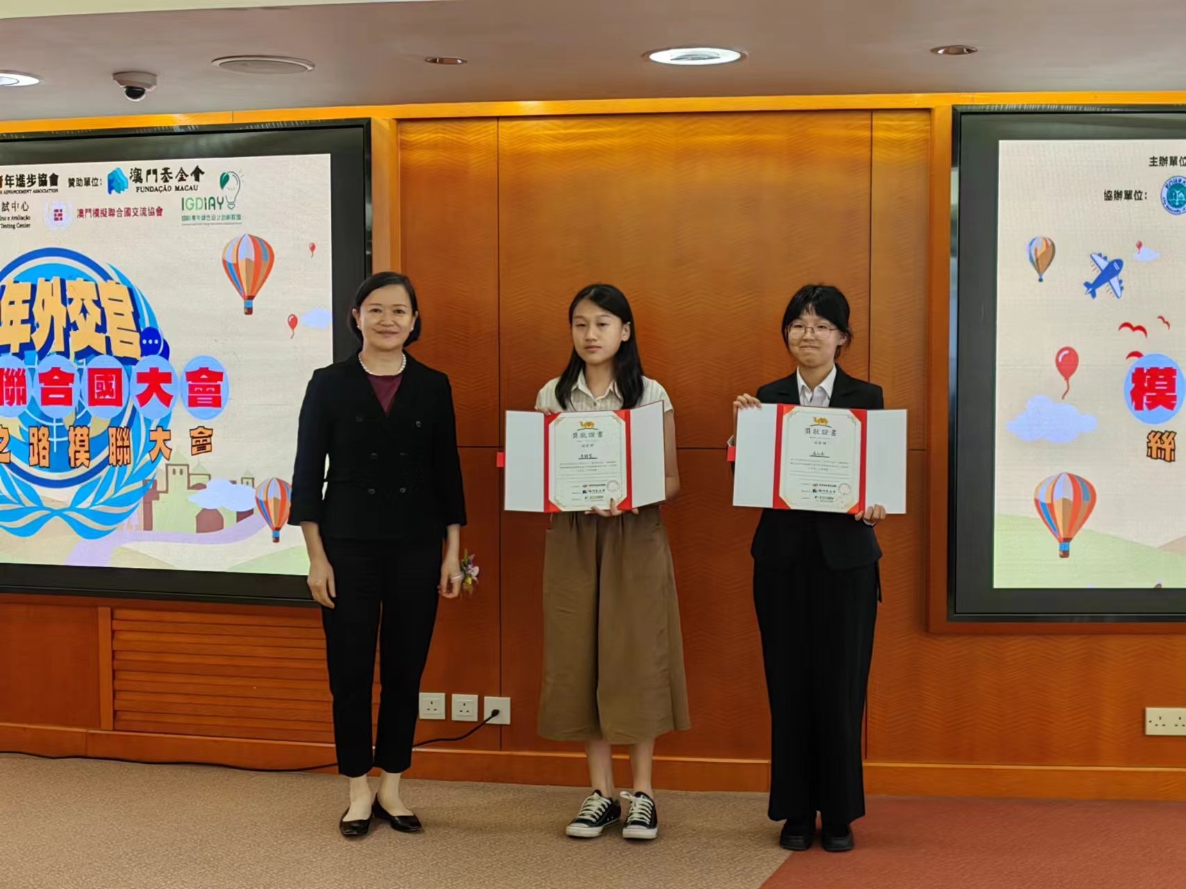 【即時新聞】由中華青年進步協會主辦,澳門基金會贊助,澳門城市大學國際培訓與測試中心、國際青年綠色設計創新聯盟、澳門模擬聯合國交流協會協辦的“青年外交官’模擬聯合國大會暨絲綢之路模聯”今日舉行頒獎禮,近百名的澳門學生和西安學生在為期兩日的培訓會議中,圍繞“碳達峰”、“WTO”等議題進行討論,主辦方冀透過活動構築兩地青年交流平台,拓展學生的國際視野及外交能力,鼓勵他們從不同的角度思考全球議題。