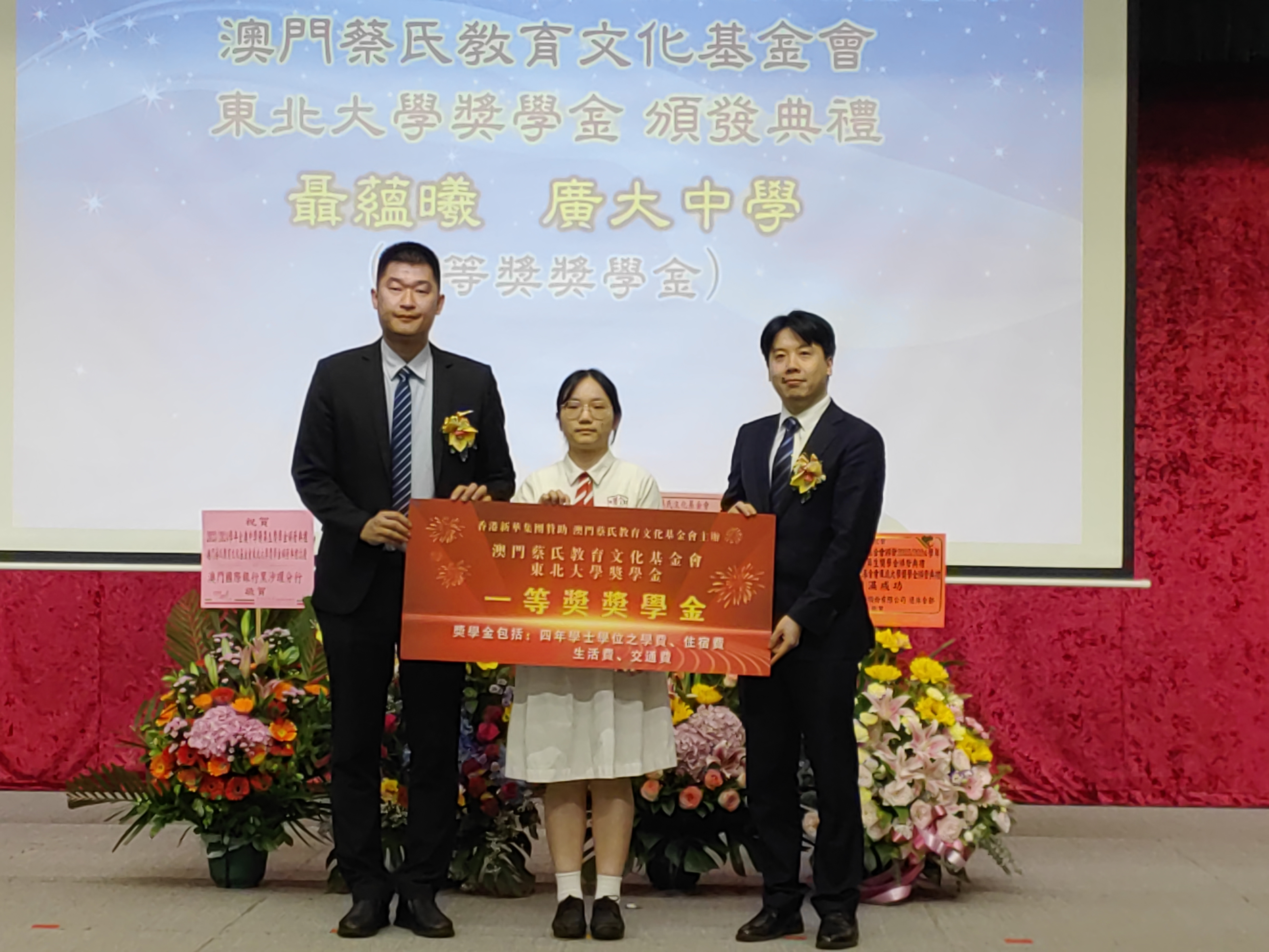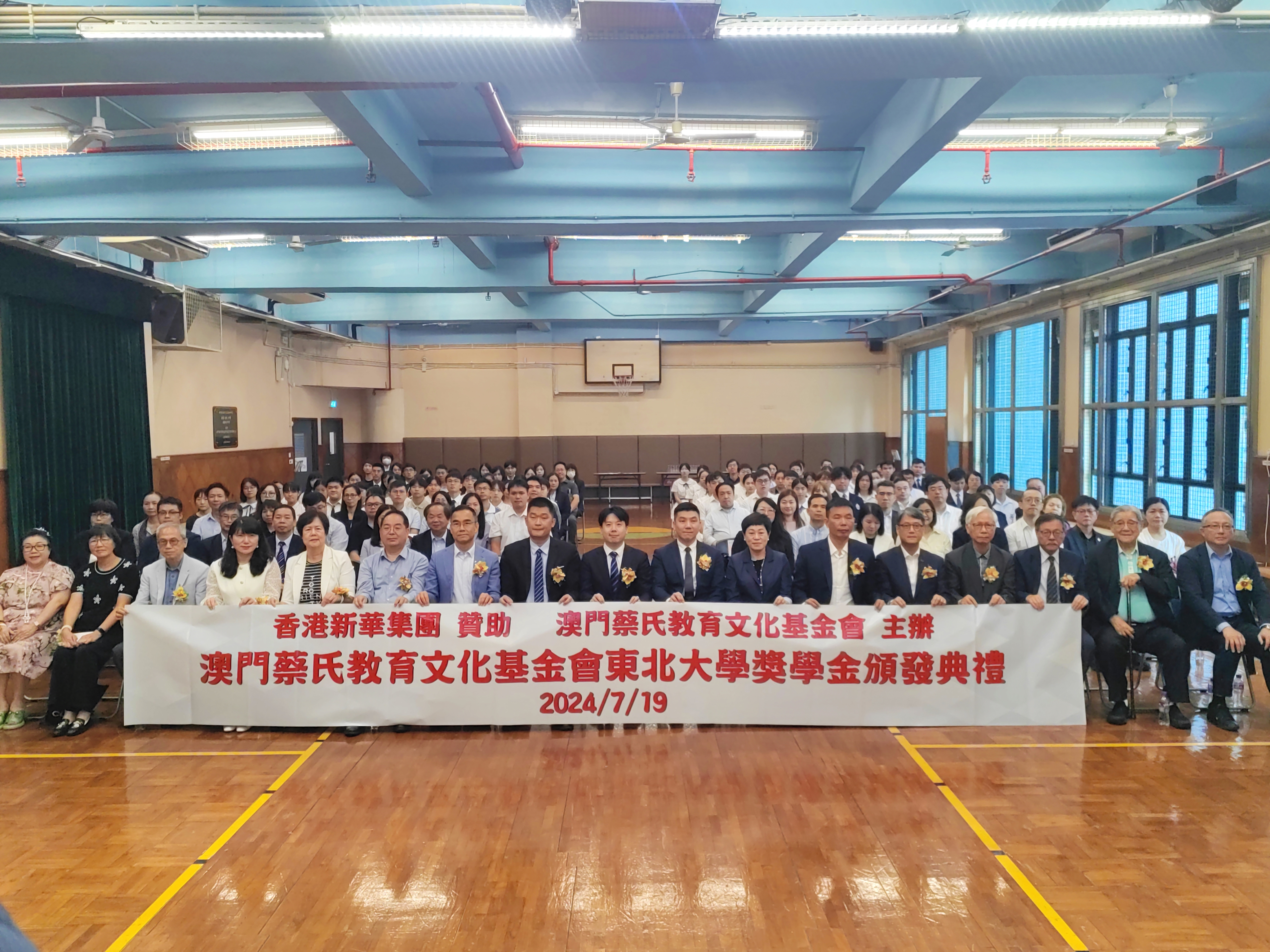 【即時新聞】由香港新華集團贊助,澳門蔡氏教育文化基金會主辦的2023—2024學年全澳中學優異生獎學金頒獎禮下午假新華夜中學舉行,來自不同校的五十三位學生獲獎;同場舉辦澳門蔡氏教育文化基金會東北大學獎學金頒獎,有三名學生獲得一等獎和一名學生獲得二等獎。