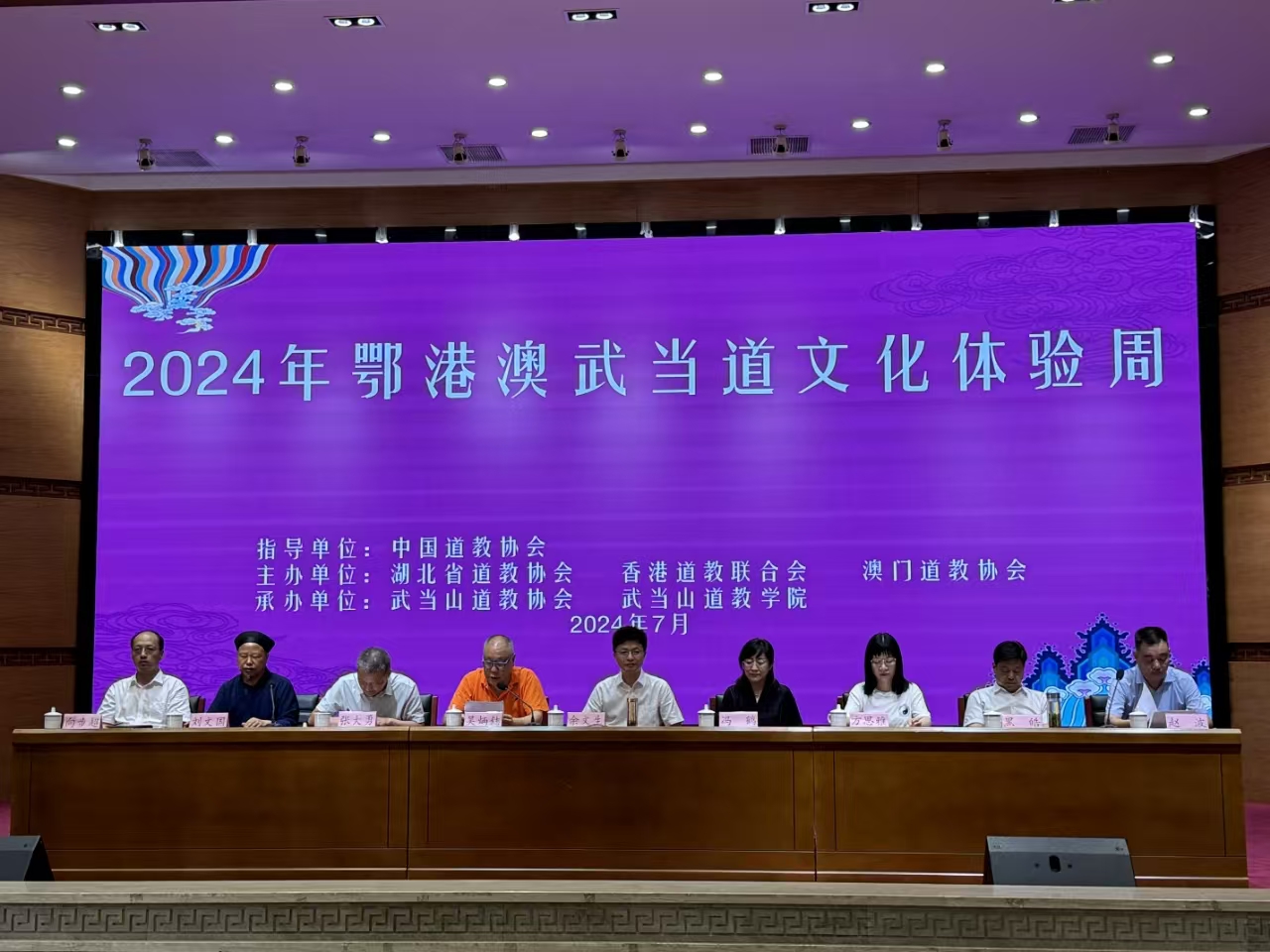 文化交流啟新程,共赴武當悟道行。7月23日上午,2024年鄂港澳武當道文化體驗周,假武當山道教學院正式拉開序幕,來自澳門、香港的青少年50多位學員歡聚一堂,共同開啟了這場意義非凡的文化之旅。出席開幕禮嘉賓包括湖北省民宗委副主任余文生、十堰市委統戰部副部長張大勇、中國道教協會代表國際部主任馮鶴、澳門道教協會會長吳炳鋕、武當山道教協會會長劉文國、丹江口市市委辦公室主任黑皓、武當山特區黨委統戰部副部長趙波、香港道教聯合會代表方思雅及湖北省道教協會秘書長向步超等。