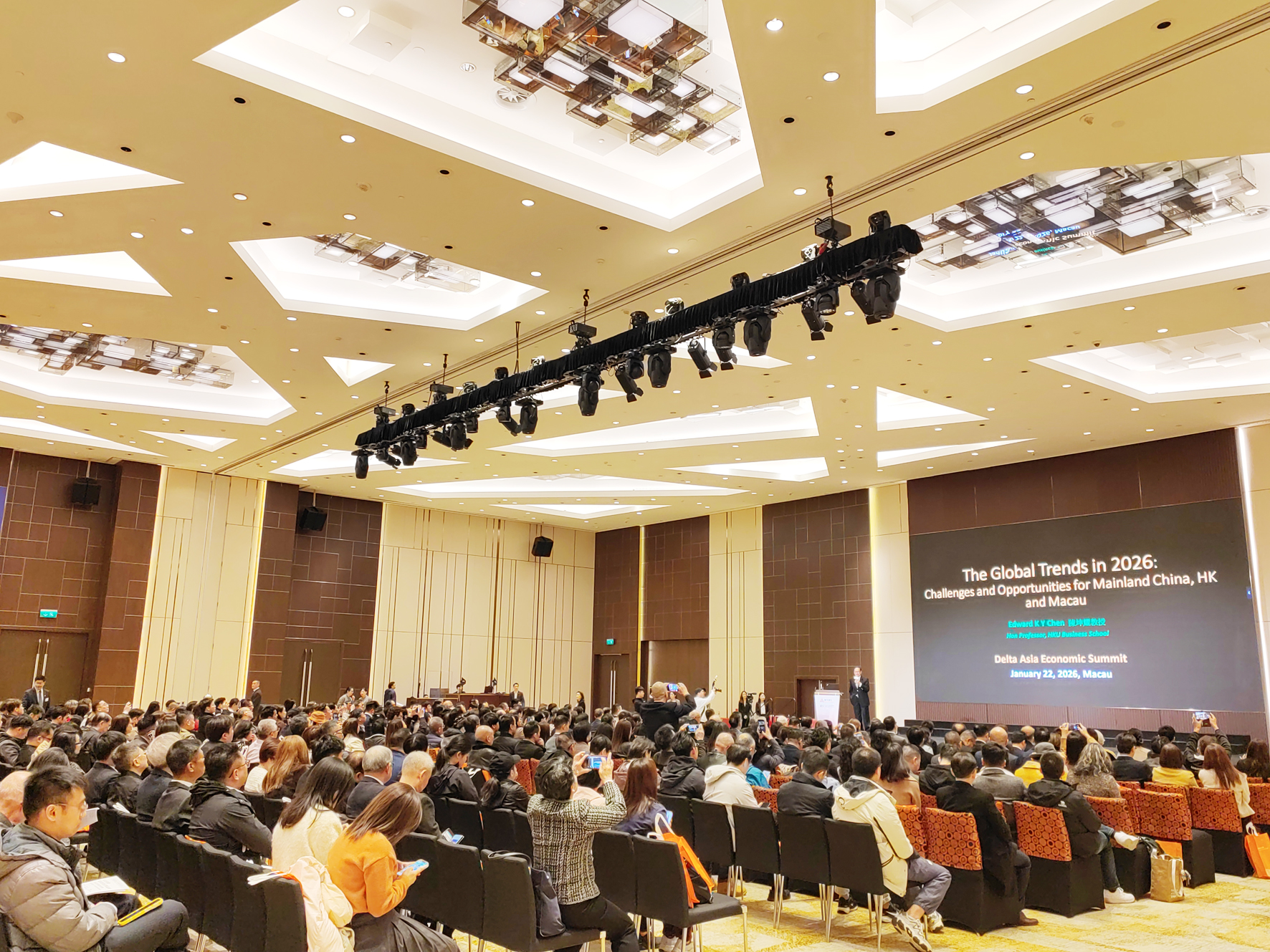 高峰論壇上,三位亞洲經濟與金融領域專家分享真知灼見,其中前嶺南大學校長、香港大學經管學院名譽教授陳坤耀於講座上分享講題《中國內地、香港與澳門在2026年的經濟展望:挑戰與機遇》時表示,2026年全球面臨地緣政治分裂、經濟不確定、技術顛覆及環境惡化四大挑戰。儘管國際格局動盪,全球卻難以完全脫鉤,大規模戰爭風險可控。他提出三大機遇方向:一是積極開拓以印度和東盟為代表的「中間力量」市場;二是推動教育與人才的國際合作,不僅重視STEM(科技、工程、數學)領域,也兼顧HELP(人文、教育、法律與哲學)等軟實力發展;三是強化政府在戰略規劃與產業政策上扮演的引導角色以提升整體競爭力。展望經濟,預測全球增長約2.6-2.9%,中國內地增長介乎4-5%,香港及澳門則分別約2.8-3.2%與2.5-3.5%,動力主要來自AI相關產業、區域貿易及旅遊復甦。